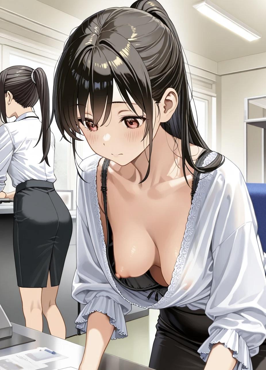 夏の胸チラOL