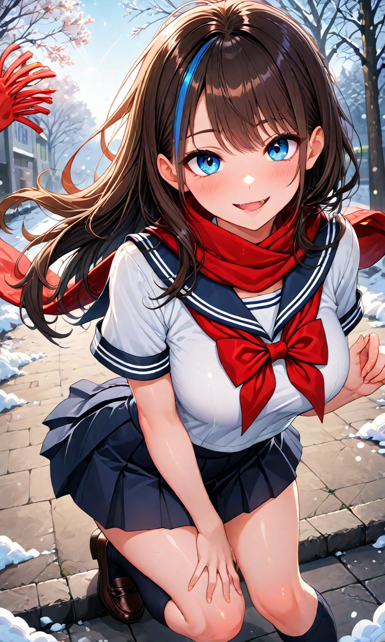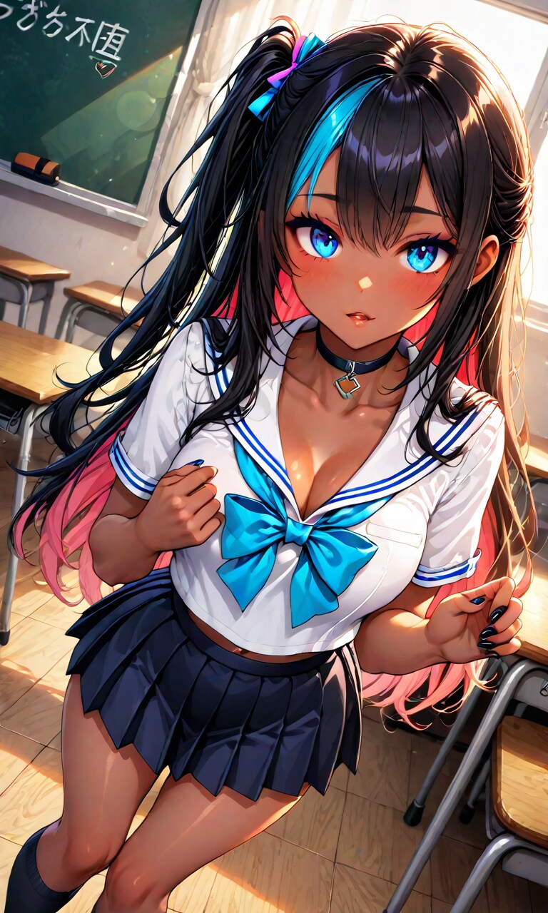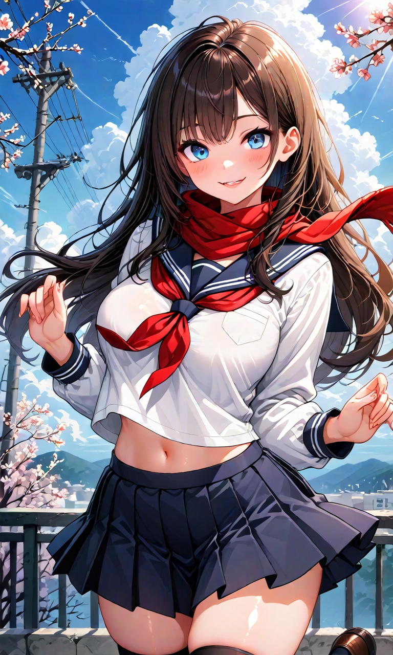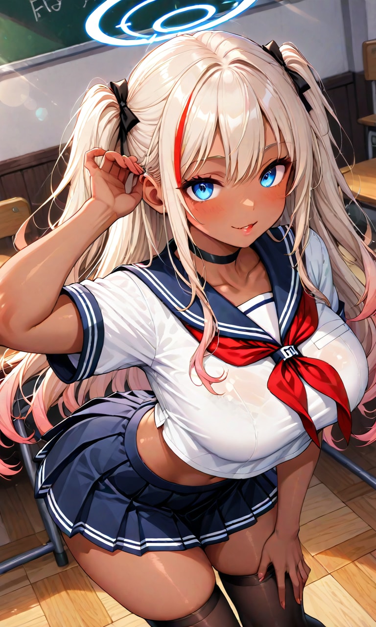 20251208【5枚】鏡の前でポーズをとるセーラー服の黒髪の女性