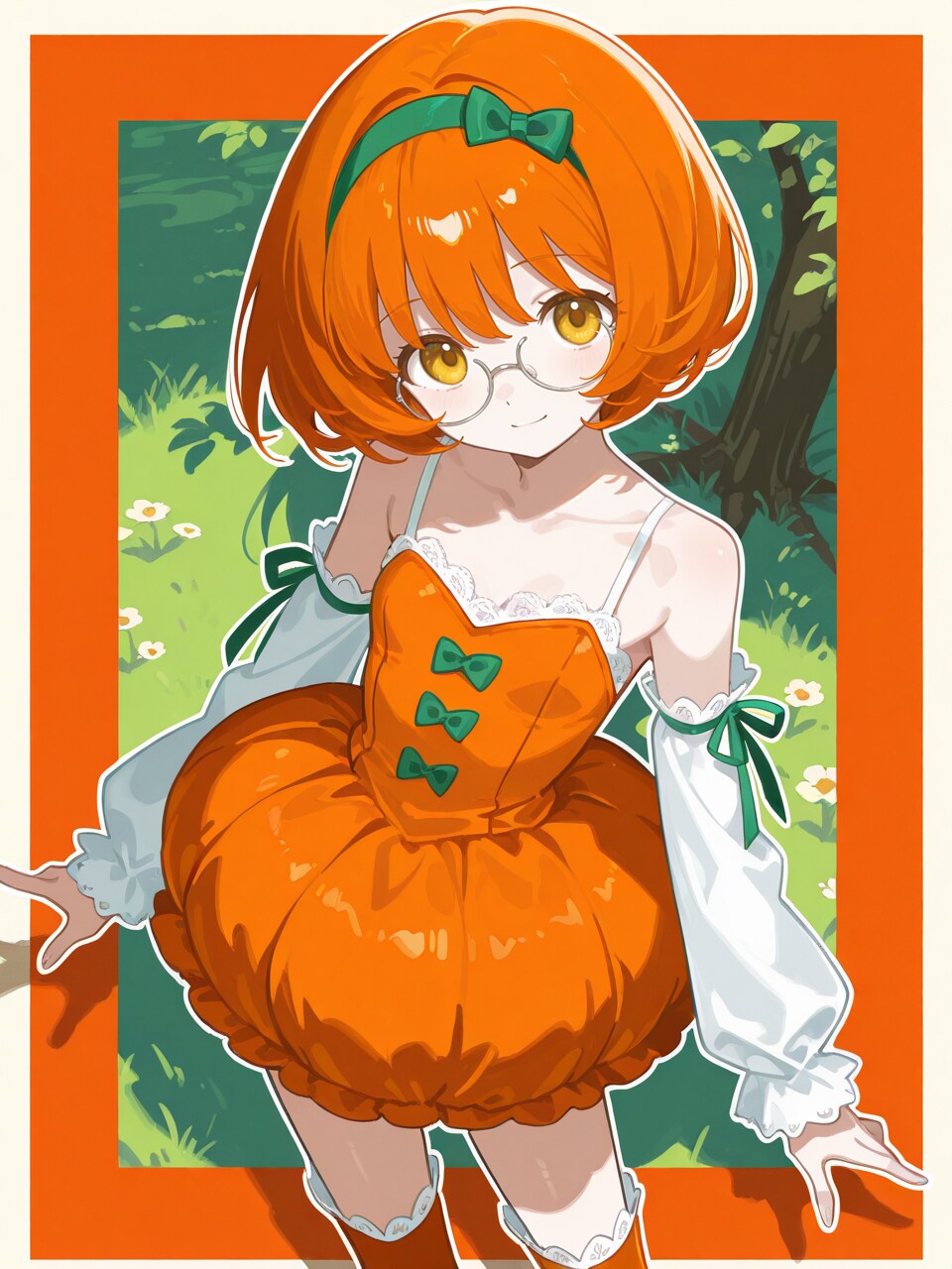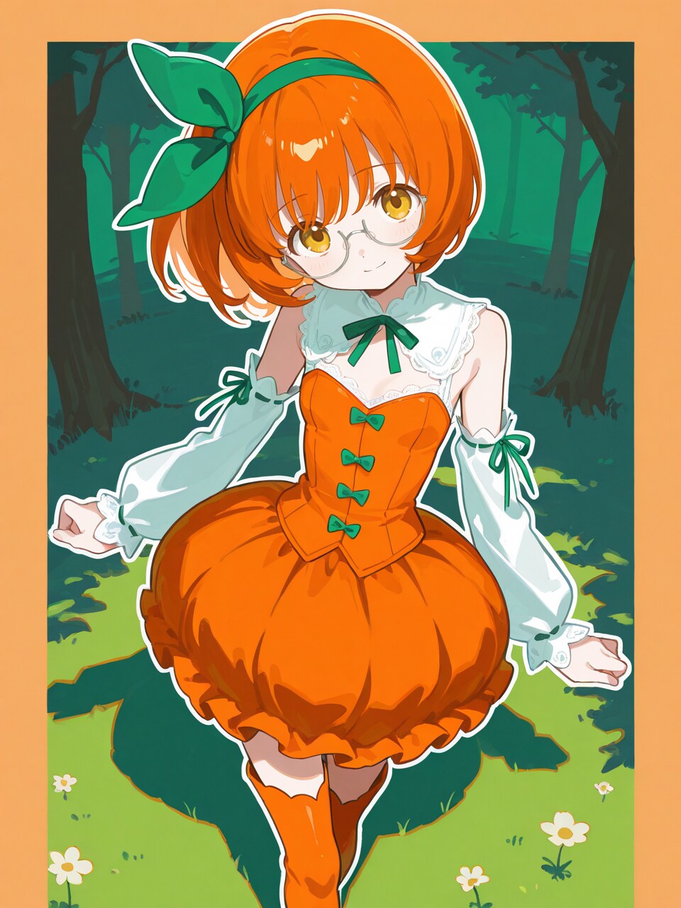orange dress, sleeveless, (white lace-trimmed clothes:1.2),