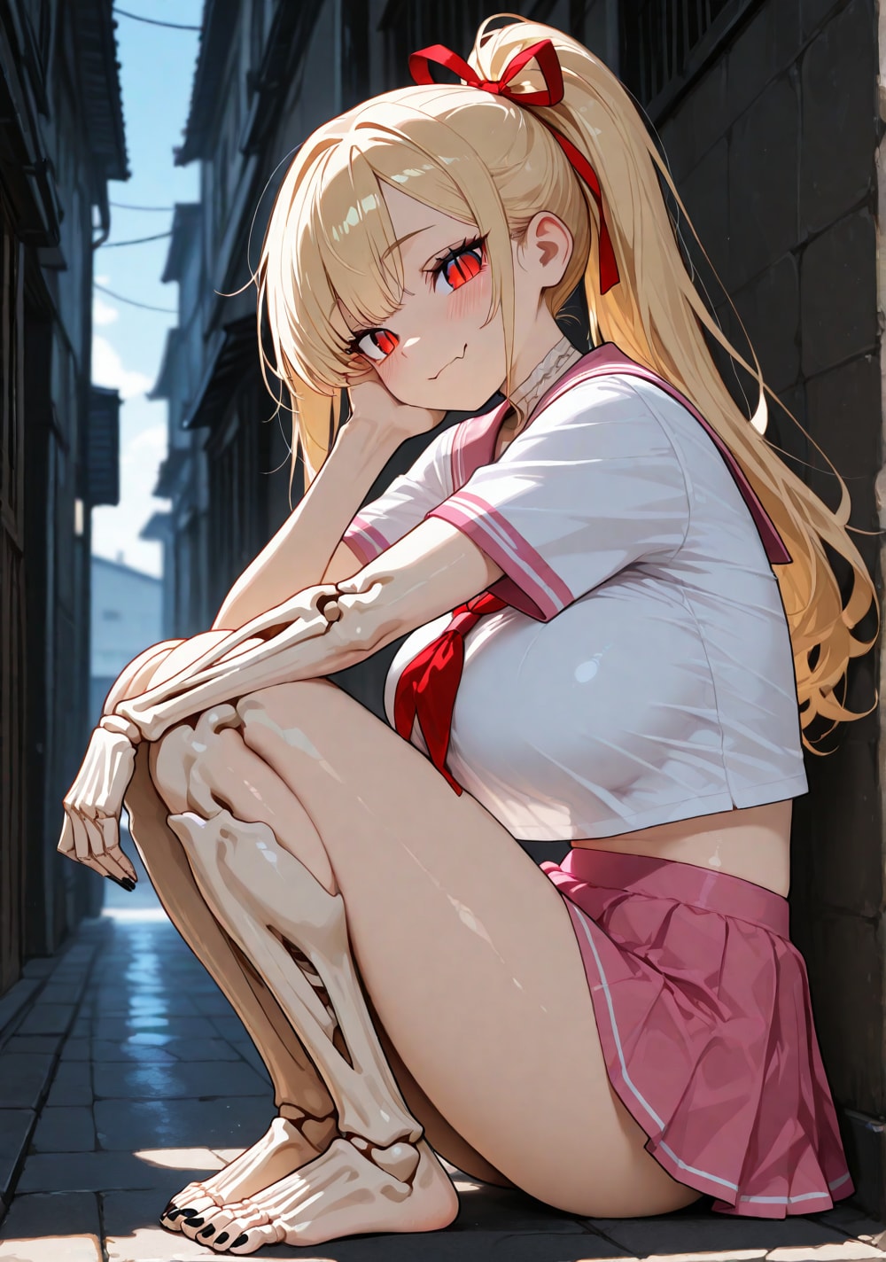 20260208【5枚】バーカウンターに座るバニーガール風メイド衣装の金髪の女性