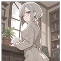(glasses:1.2), light smile, looking back,