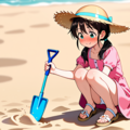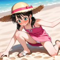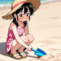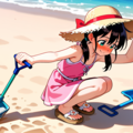 波の音が心地よく響く中、一人の少女が砂遊びをしているのを見かけた。