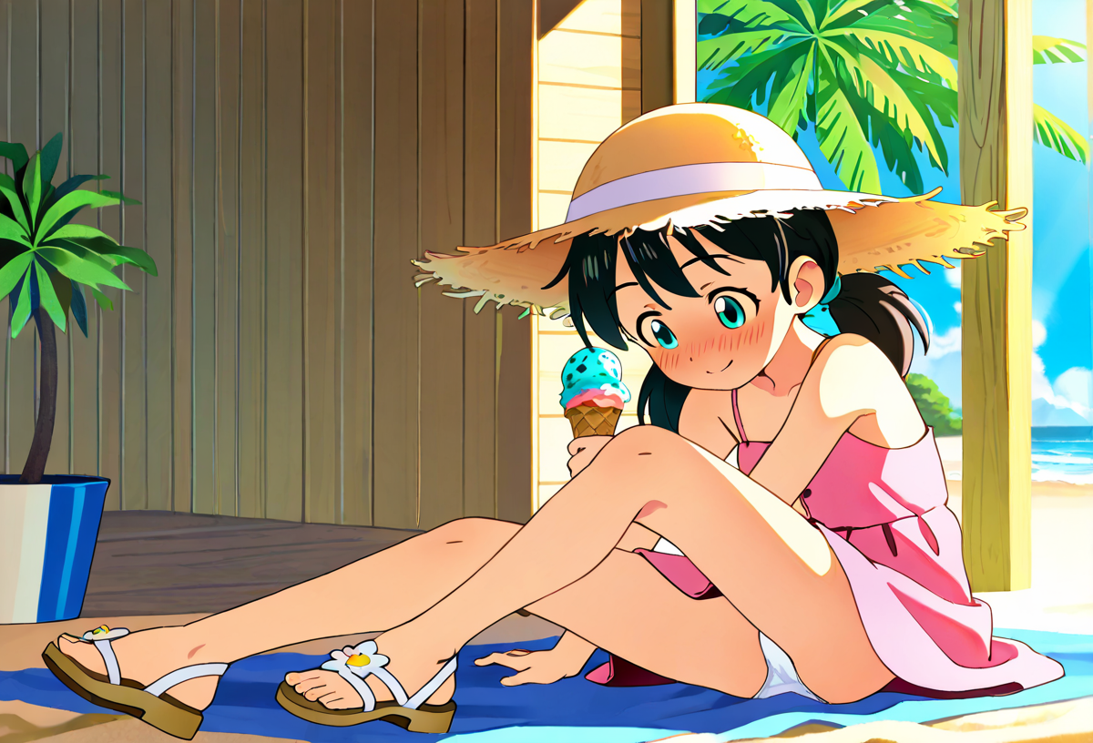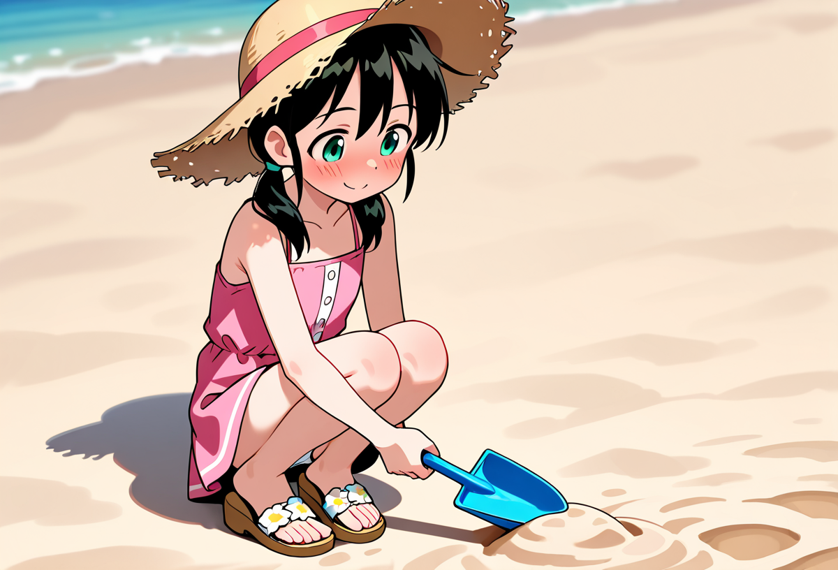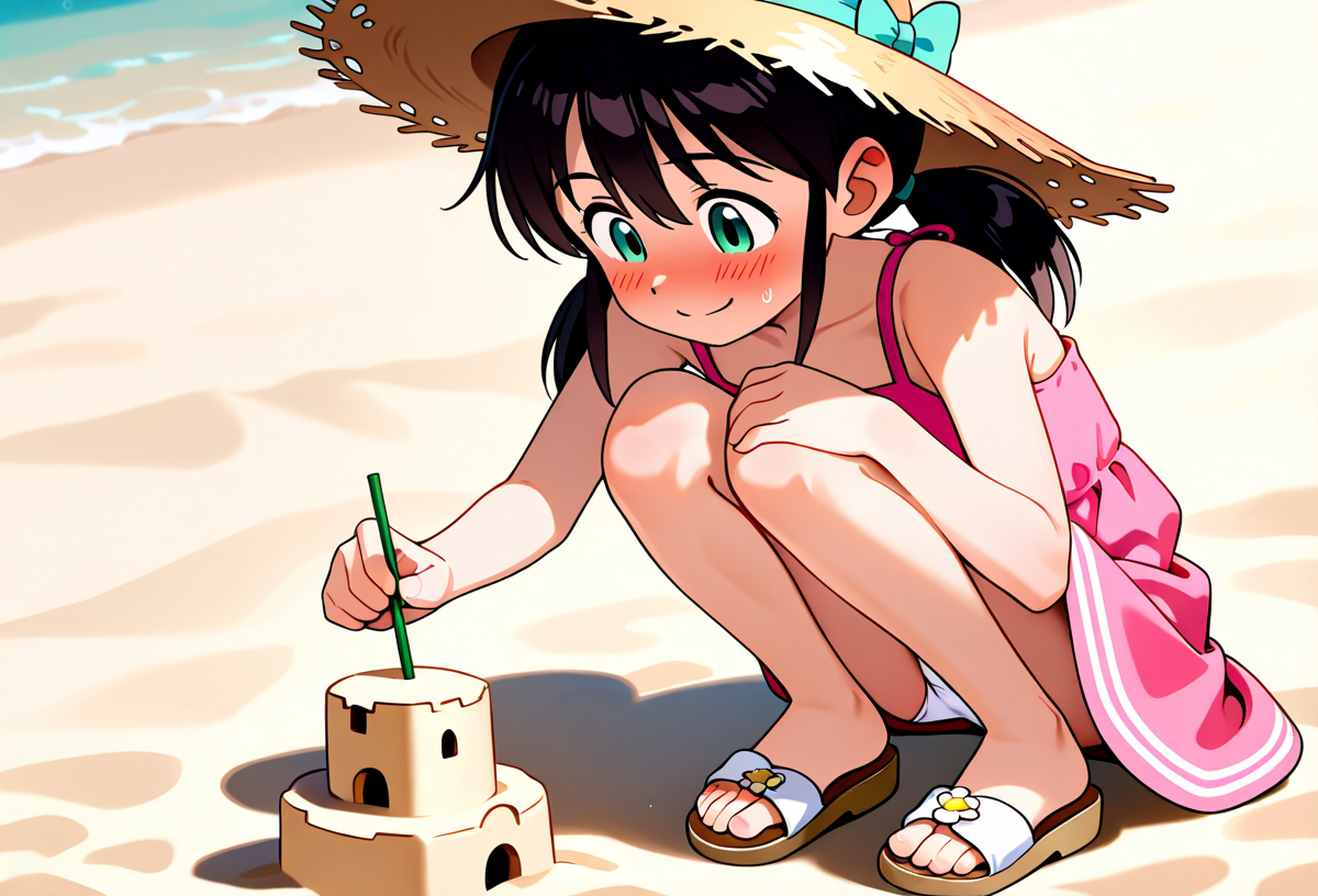 ある晴れた夏の日、砂浜は太陽の光を浴びてキラキラと輝いていた。 波の音が心地よく響く中、一人の少女が砂遊びをしているのを見かけた。 カラフルなバケツとシャベルを使って、一生懸命に砂の城を作っている姿がとても楽しそうだった。 思わず、彼女の元へ近づいてみることにした。 「こんにちは!君の砂の城、すごく素敵だね!」 と声をかけると、すずかは驚いて顔を上げ、ニコッと笑ってくれた。 彼女はすずかと名乗った。 「ありがとう!でも、まだ完成してないの。」 その笑顔に、僕もつい嬉しくなった。 「一緒に作ろうか?もっと大きな城にできるよ!」 そう提案すると、彼女は嬉しそうに頷いた。 二人で協力して砂の城を作り始める。 僕は大きなバケツで砂を運び、すずかは細かい部分を作り上げていく。 楽しい会話を交わしながら、あっという間に素晴らしい砂の城が完成した。 その後、すずかが少し疲れた様子で 「アイスが食べたいな」 とつぶやいた。 僕は笑顔で 「じゃあ、アイスを買いに行こう!僕がごちそうするよ。」 と言った。 彼女の目がキラキラと輝いて、 「本当に?ありがとう!」 と嬉しそうに答えてくれた。 二人で近くのアイスクリームスタンドへ向かう。 僕はすずかが好きそうなフレーバーを選んであげることにした。 「これ、ストロベリー味だよ。甘くておいしいから、きっと気に入るはず!」 すると、すずかはアイスを受け取り、一口食べると 「わぁ、美味しい!」 と大喜び。彼女の笑顔を見ていると、僕も幸せな気持ちになった。 砂浜に戻り、アイスを食べながら砂の城を眺める。 すずかは 「今日は本当に楽しかった!また遊ぼうね!」 と約束してくれた。 僕は頷き、 「もちろん!次はもっと大きな城を作ろう!」 と笑顔で応えた。 こうして、砂浜での素敵な出会いが、僕たちの新しい友情の始まりとなったのだった。 浜辺で遊ぶ少女2 https://membership.chichi-pui.com/posts/images/2aab904c-e726-4005-974b-9a15b6c49cb4/