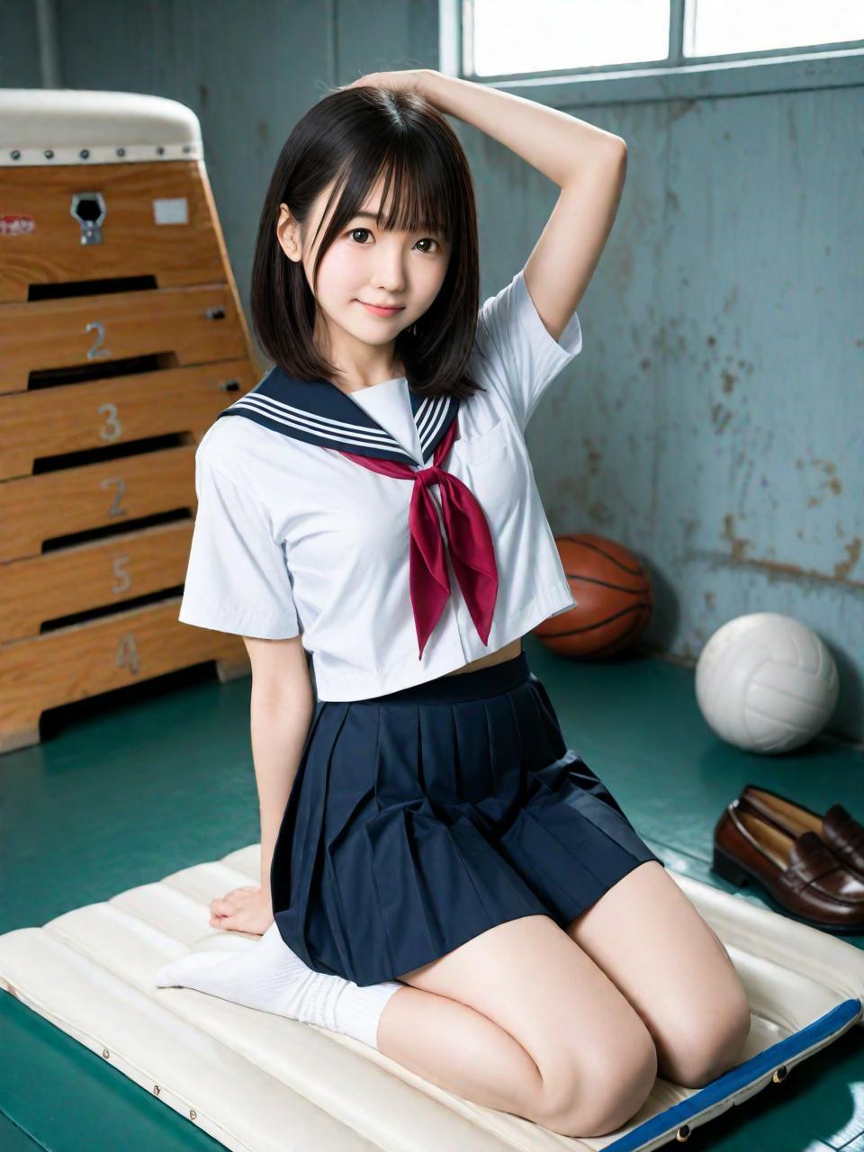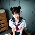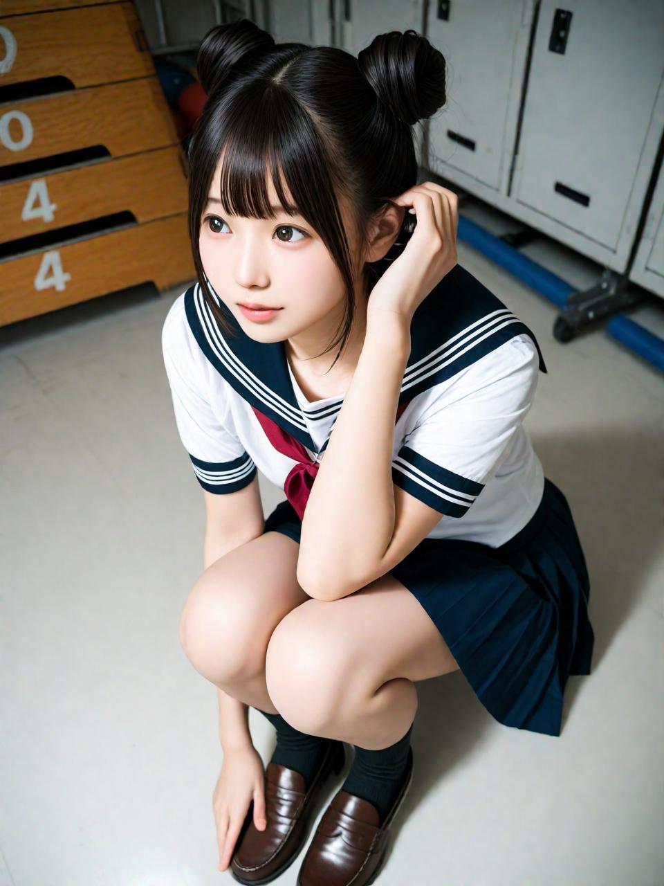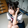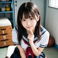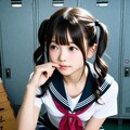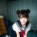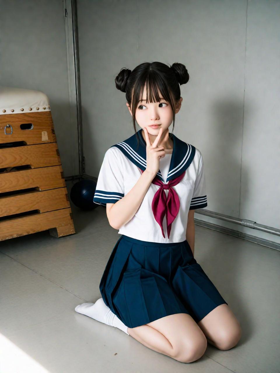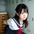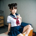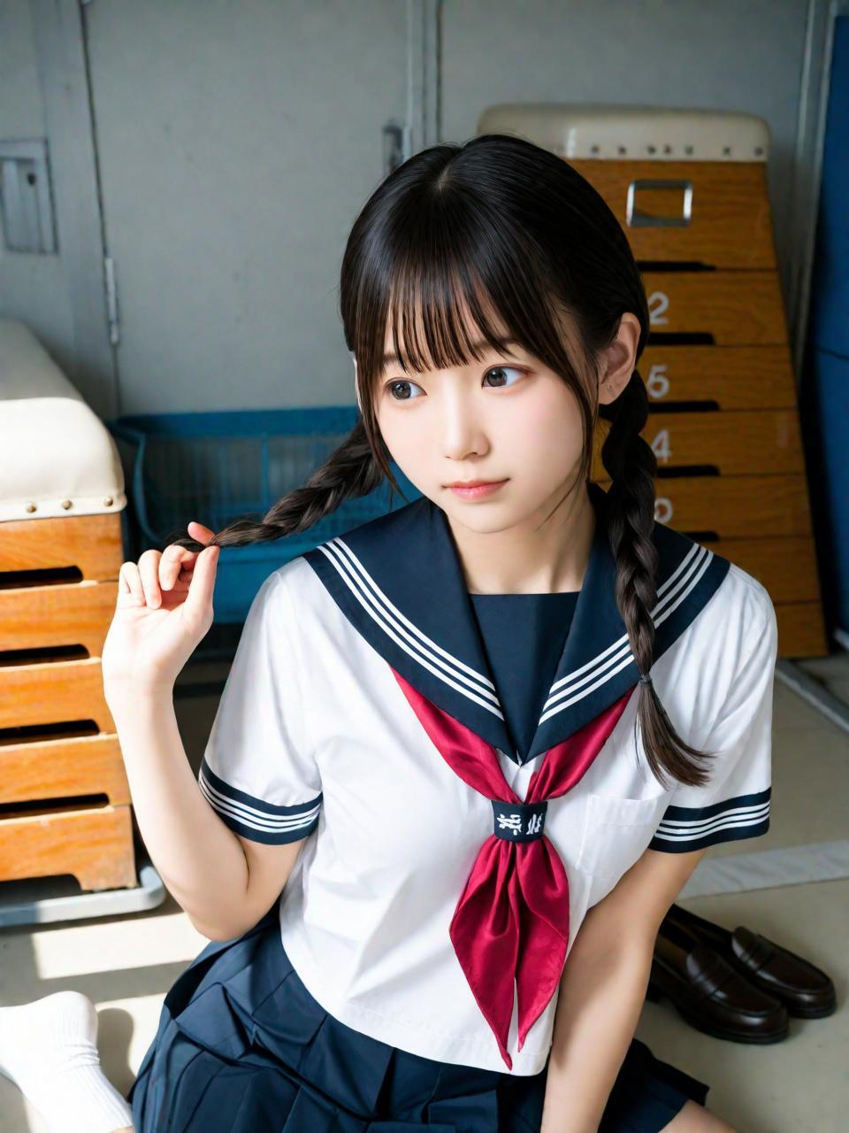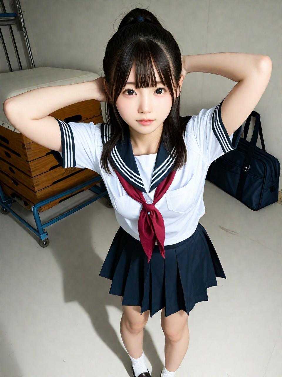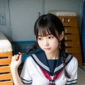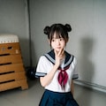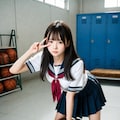 20251208【5枚】鏡の前でポーズをとるセーラー服の黒髪の女性