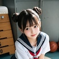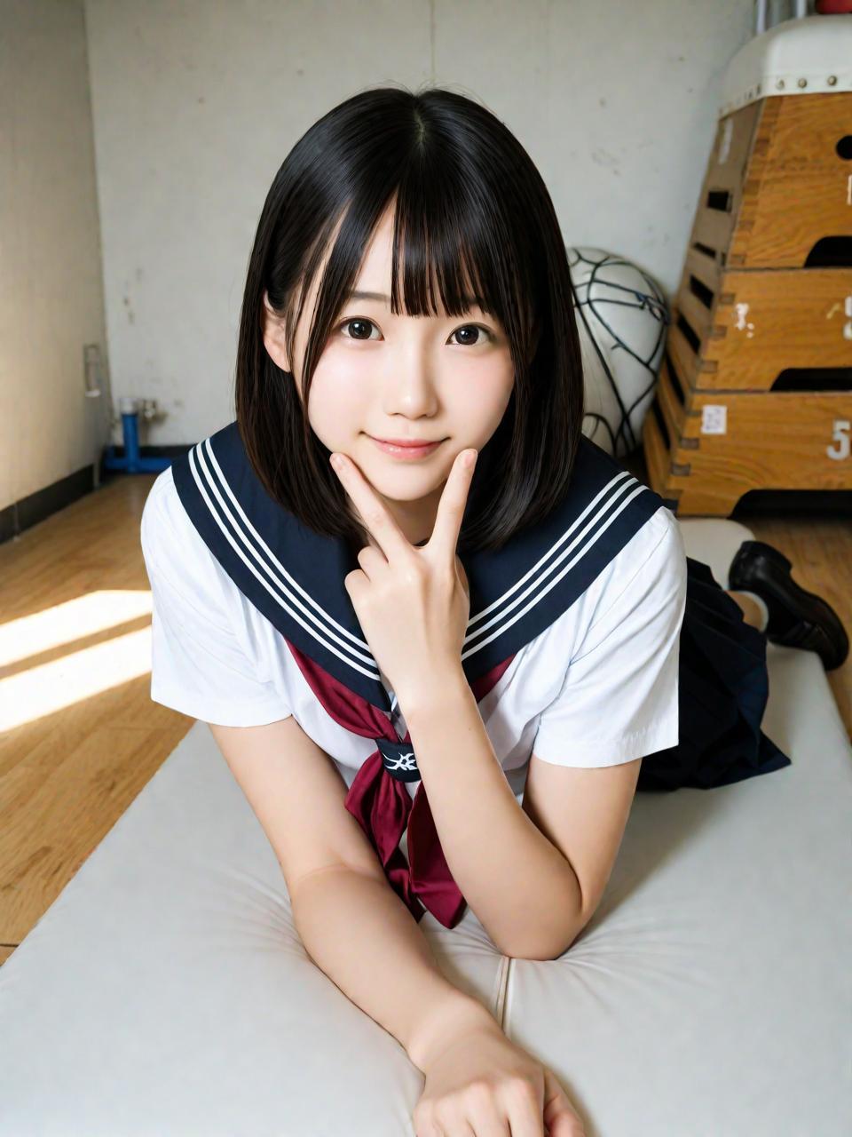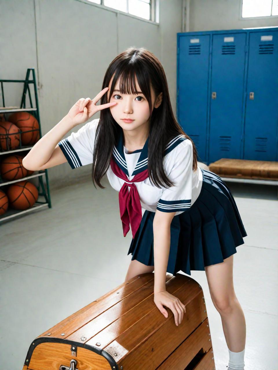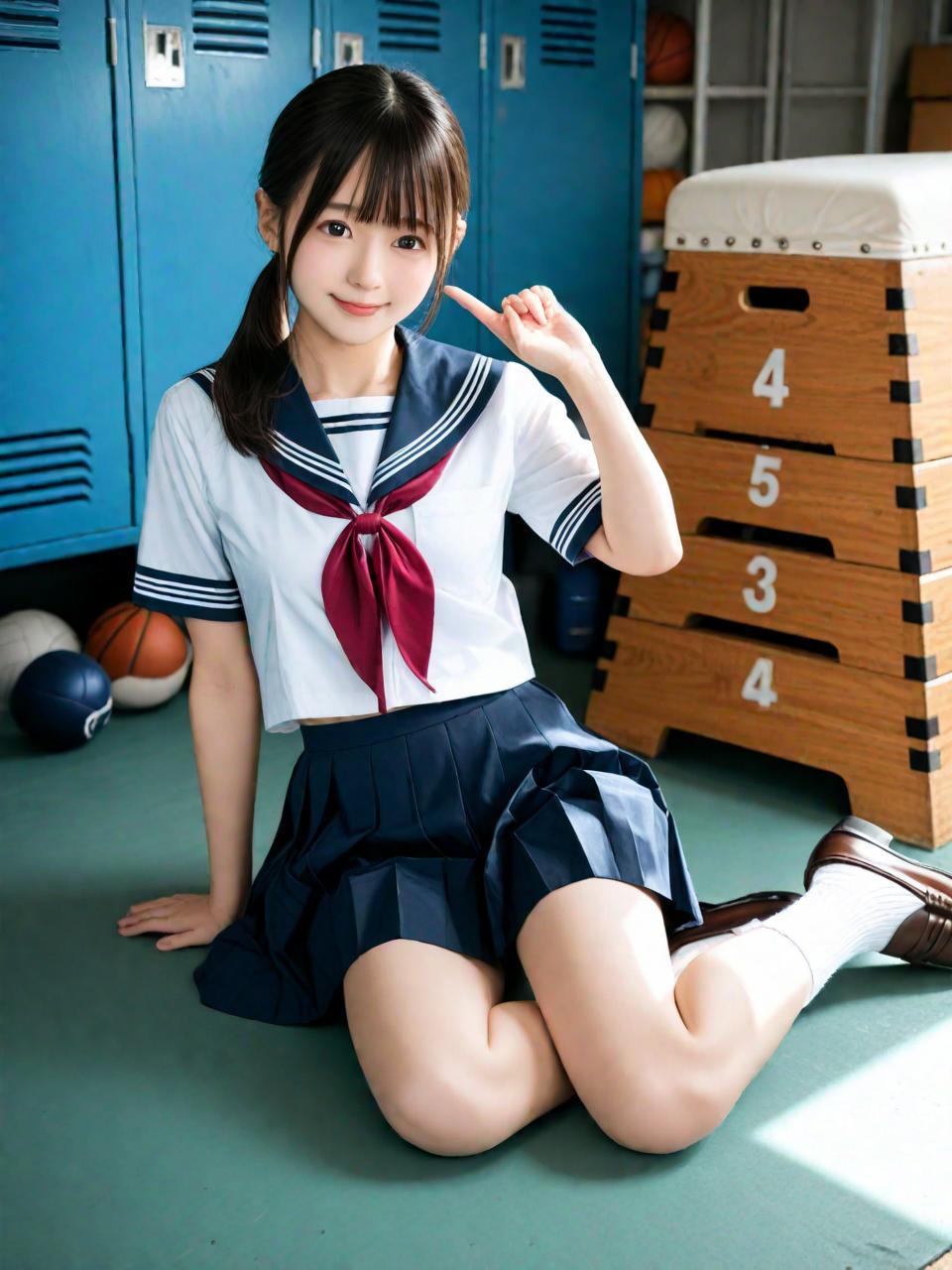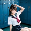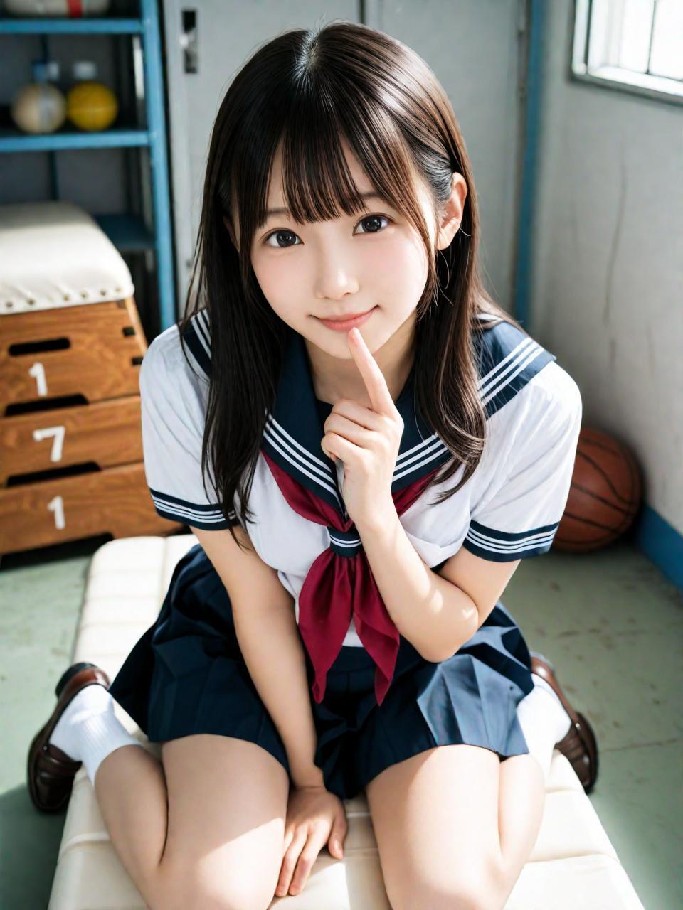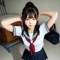 20251208【5枚】鏡の前でポーズをとるセーラー服の黒髪の女性