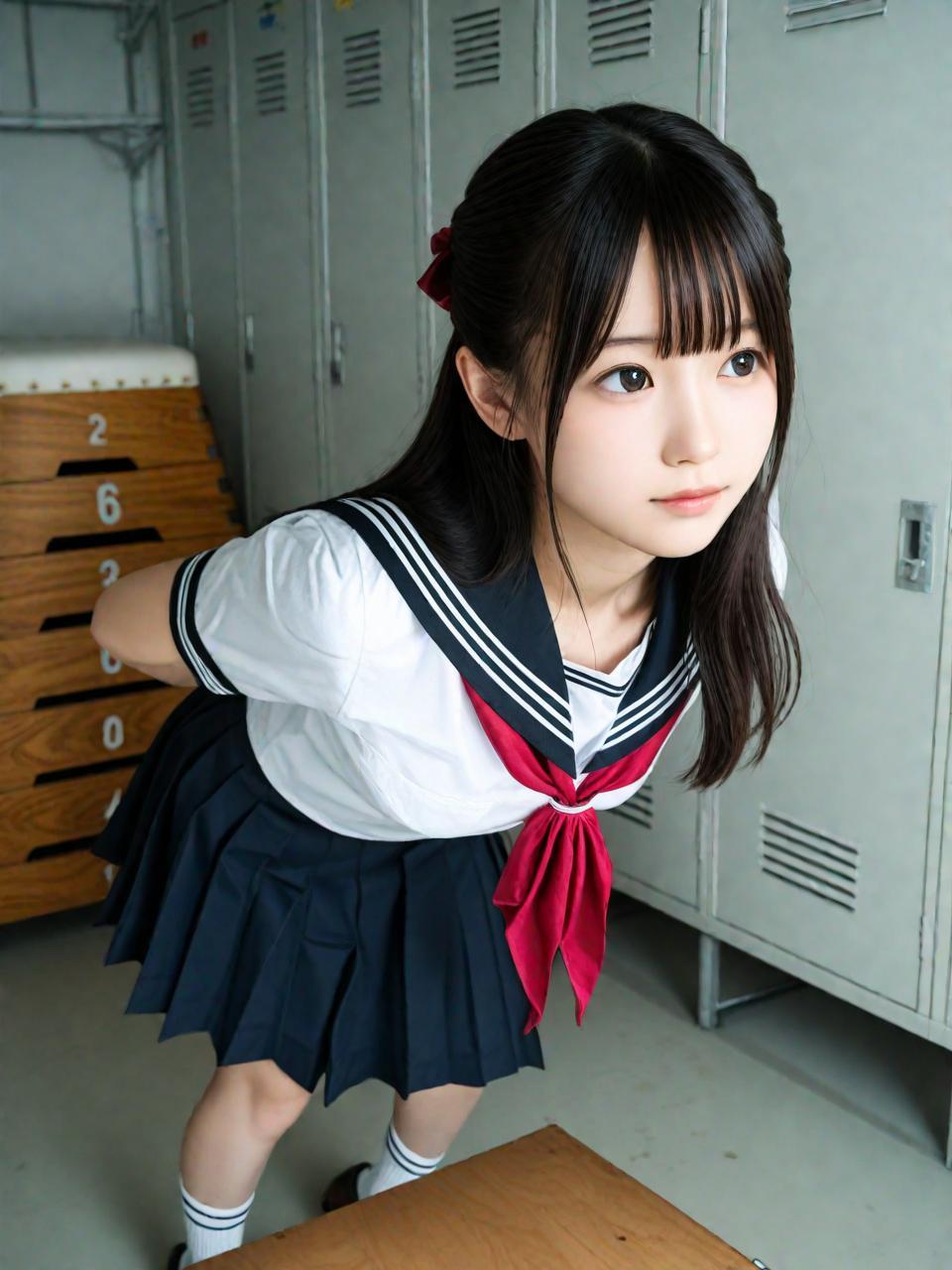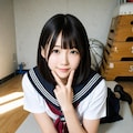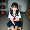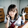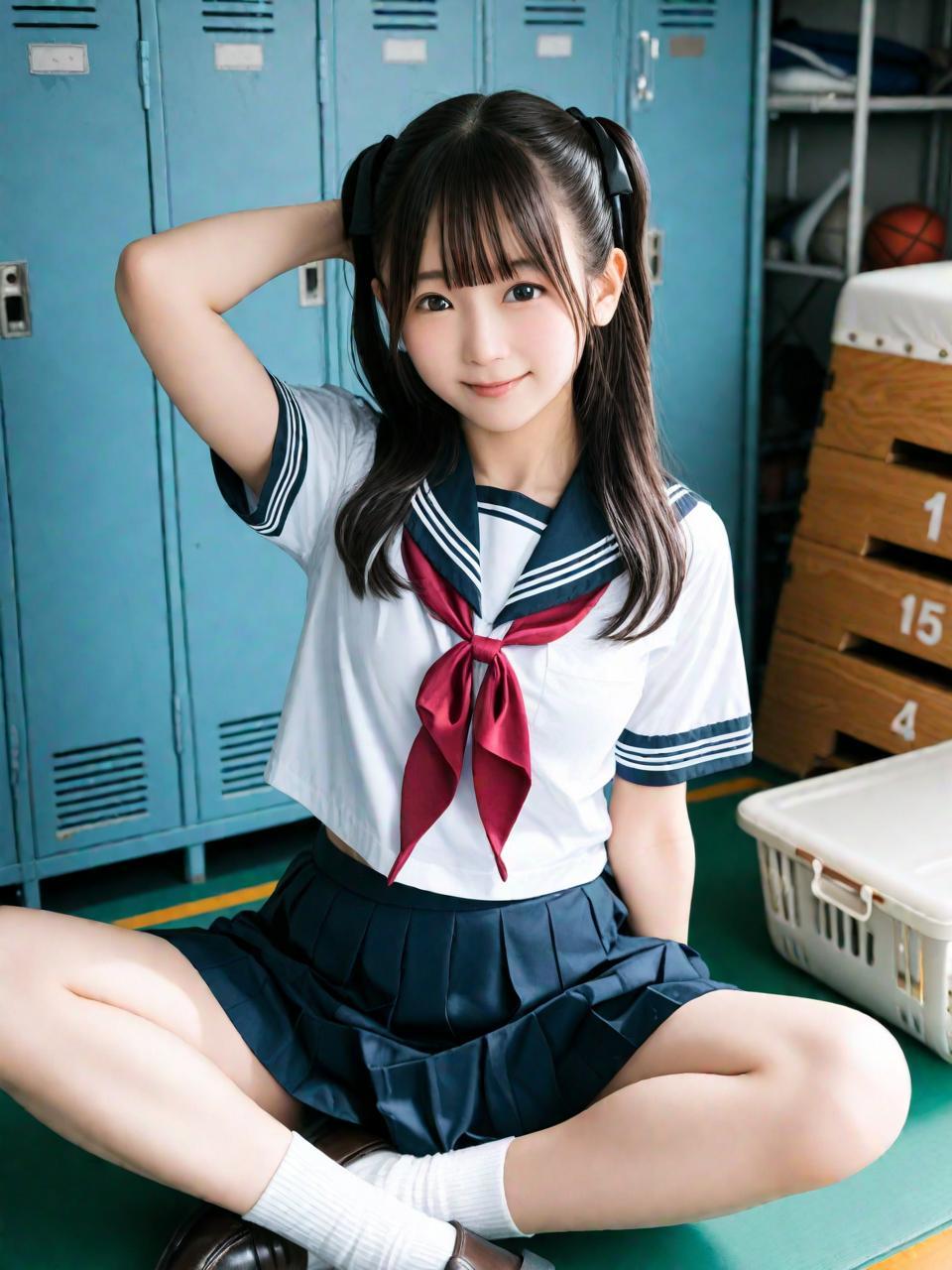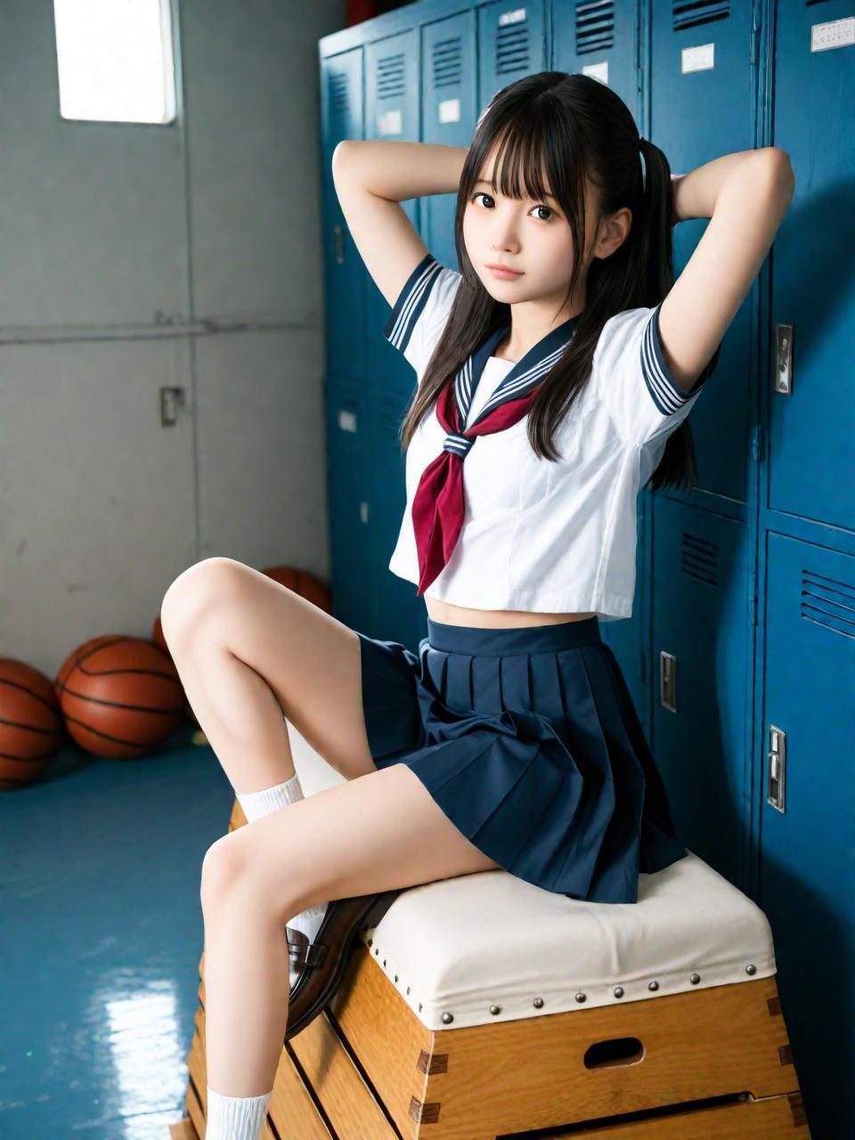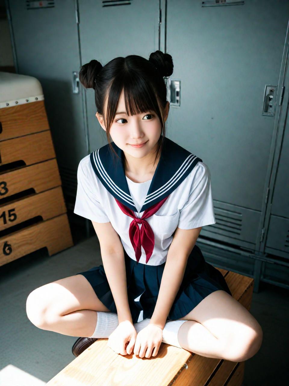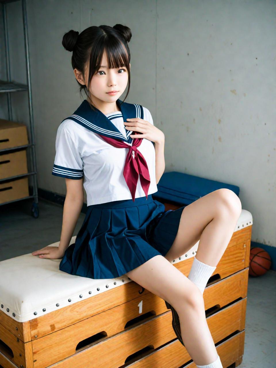 20251208【5枚】鏡の前でポーズをとるセーラー服の黒髪の女性