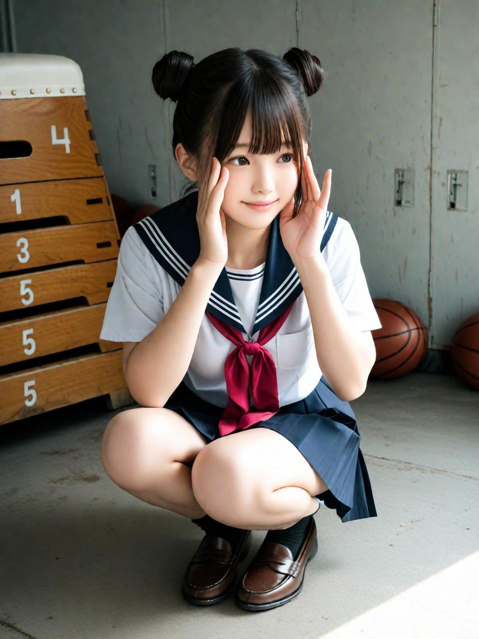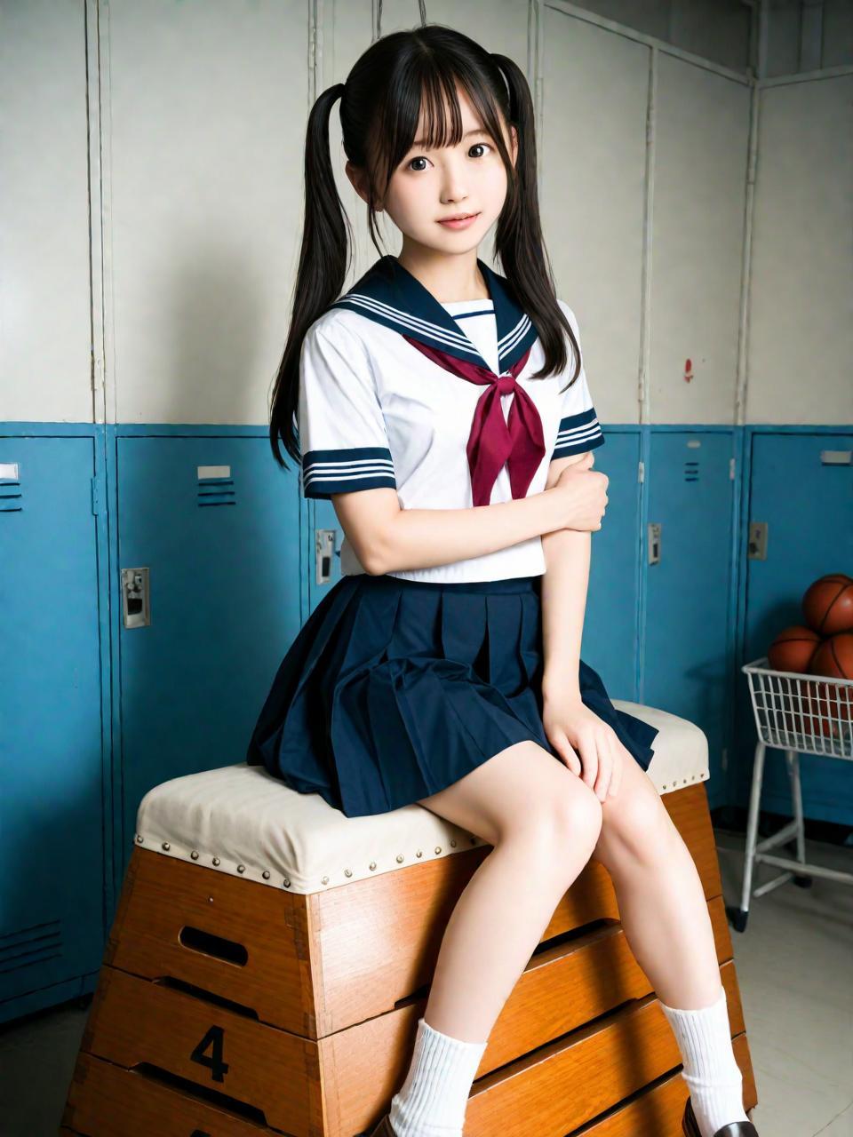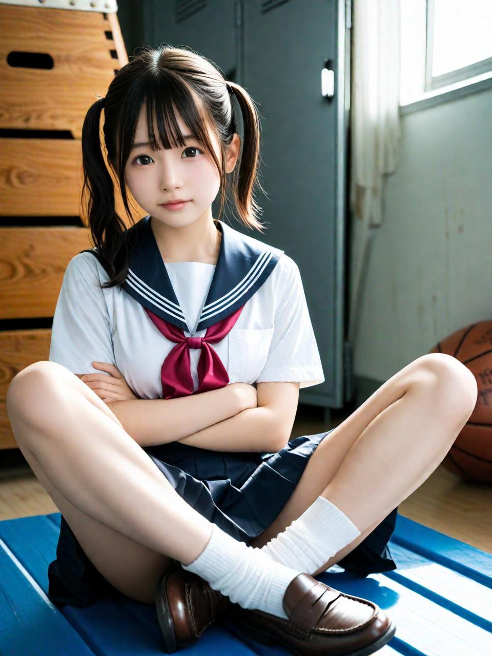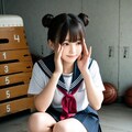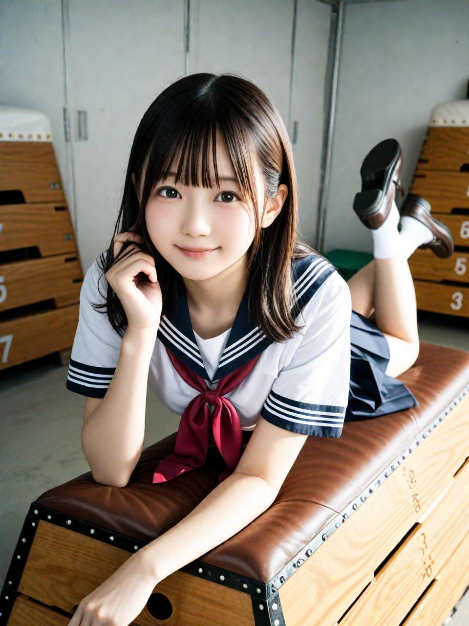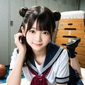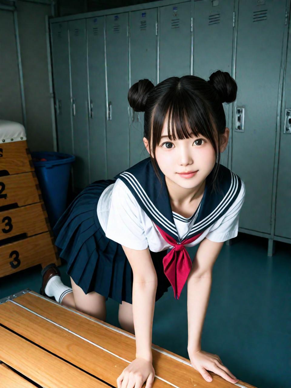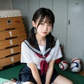 20251208【5枚】鏡の前でポーズをとるセーラー服の黒髪の女性