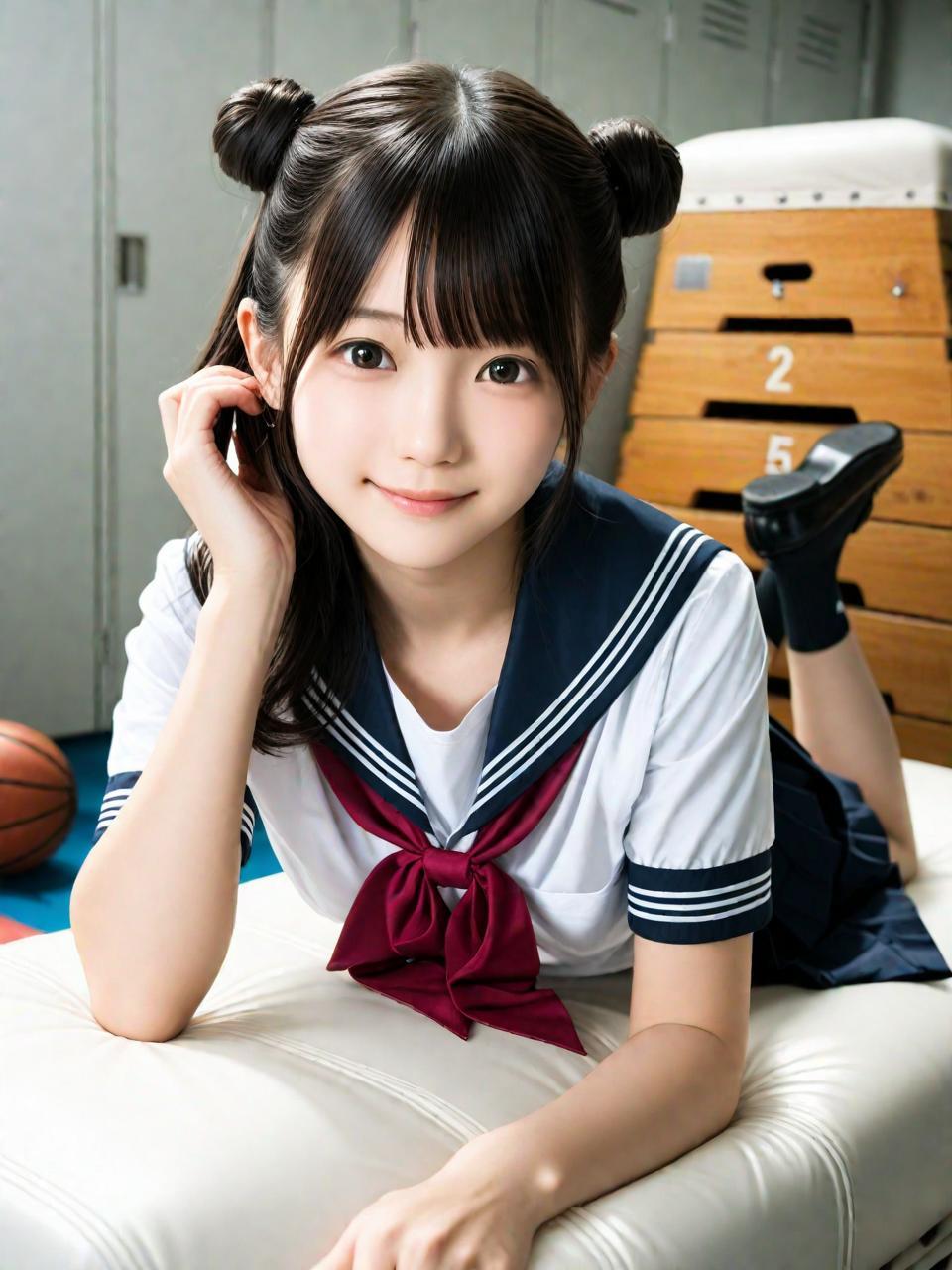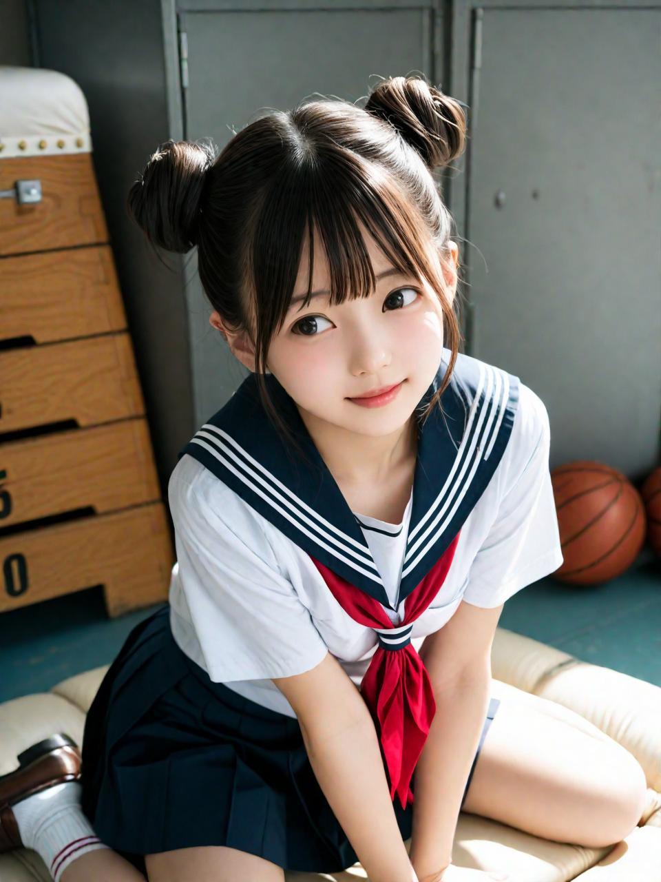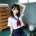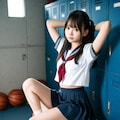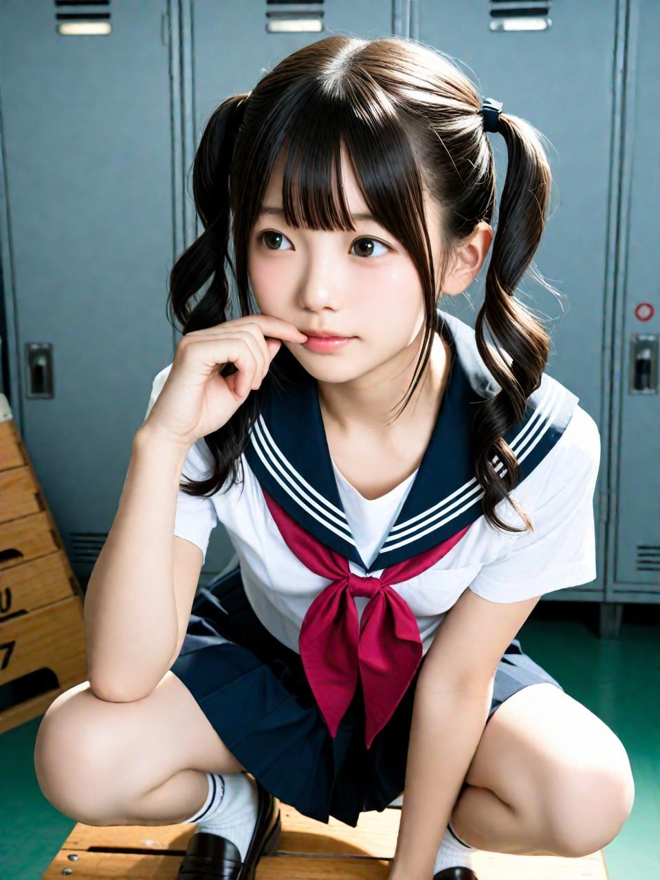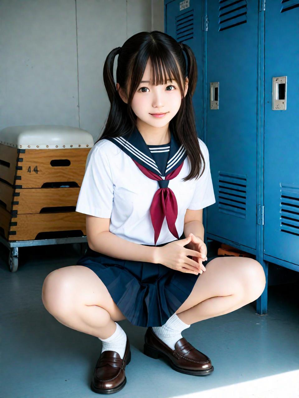 20251208【5枚】鏡の前でポーズをとるセーラー服の黒髪の女性