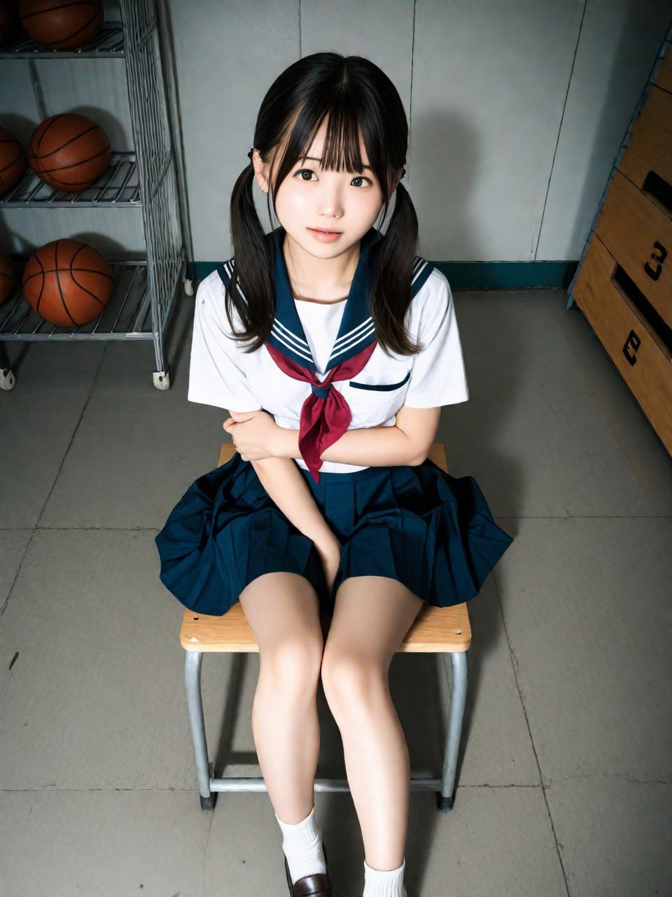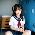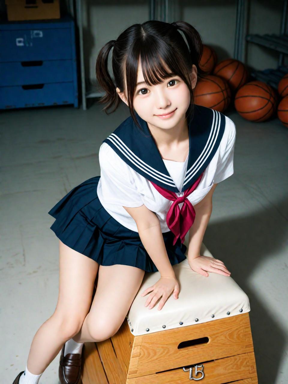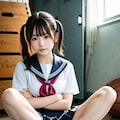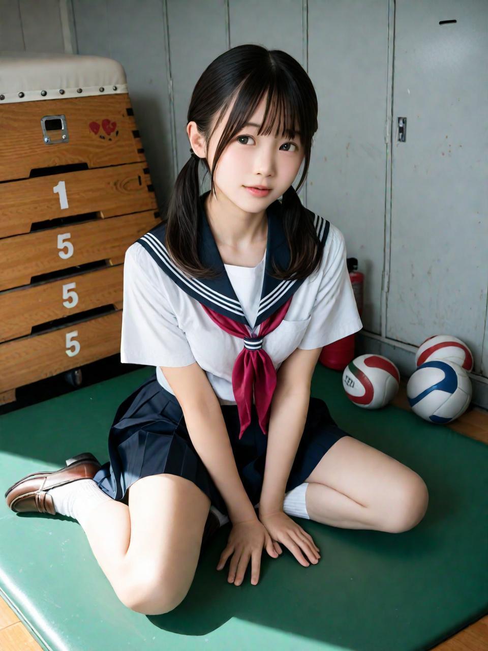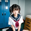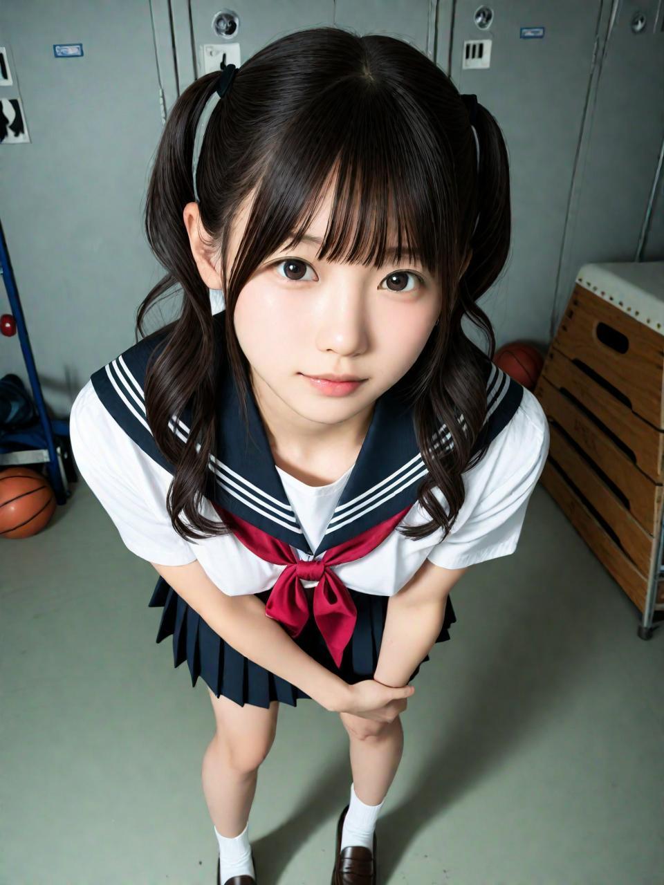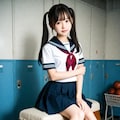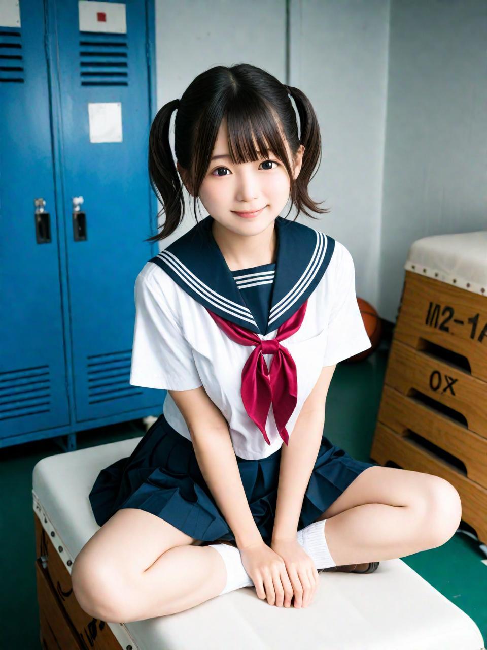 20251208【5枚】鏡の前でポーズをとるセーラー服の黒髪の女性