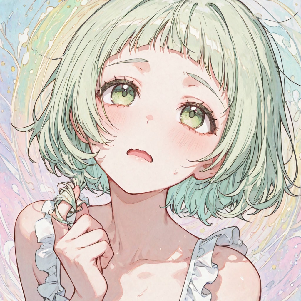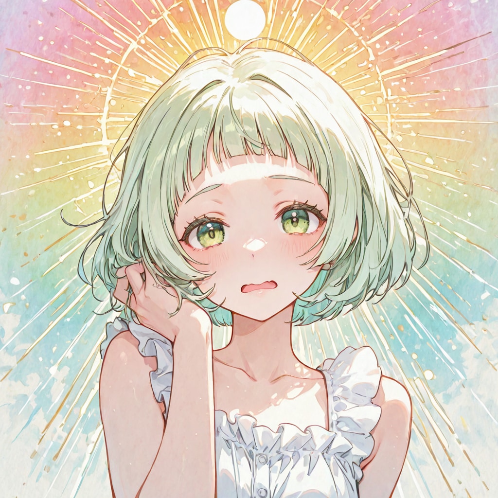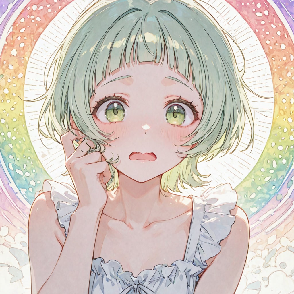 初代無料キャラのパープルちゃん 私としては珍しい金髪以外のキャラです 無料キャラの投稿企画に応募したくて考えた子です 金髪で出すとそのままアリスになってしまうので紫髪にしました 同時期にオレンジちゃんという子も居たのですが、パープルちゃんの方が生成簡単なので選びました 【呪文】 Anime, 1girl, long hair, red eyes, Big eyes:1.5, happy smile, (purple hair), (two side up hair), (shiny wavy hair), the bow, hair between eyes, white gothic dresses, crinoline dress, (Very big rabbit ears, hairband), long-sleeves, puffy sleeves, apron dress, frilled, purple hem dress, wrist cuffs, neck ribbon, ((brooch)), ◆初期版 詳細な説明はこちらを参照 https://www.chichi-pui.com/posts/67f0a33d-3316-46ac-806b-068edb9d7c4a/ 生成したらコメント戴けると嬉しいです