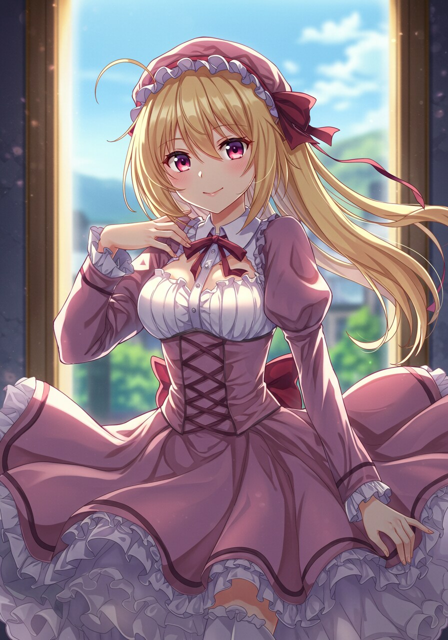 (Masterpiece: 1.4), (Ultra Quality: 1.3), 16K, (Super Detail: 1. 5), Anime style, Fate style, Madoka Magica style, Semi-realistic shading, Fantasy, Fleeting character, Soft lighting, Glowing highlights, Translucent layers, Fine clothing, One girl Smile.lolita fashion,lolita