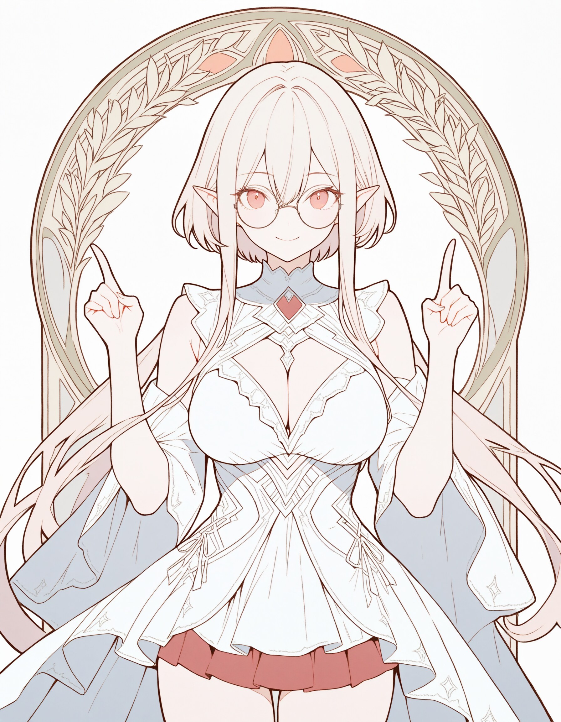 One person is dancing slowly to the dance doodle. Their hair sways elegantly with each movement, while their arms gesture expressively forming peace signs, pointing confidently, and sweeping dramatically through the air. The character's facial expression does not change, perfectly syncing with the rhythm of the unseen slowly music. Breasts bouncing up and down, natural lag and sway, bounce and jiggle gently, exhibiting realistic physics. The background does not move.