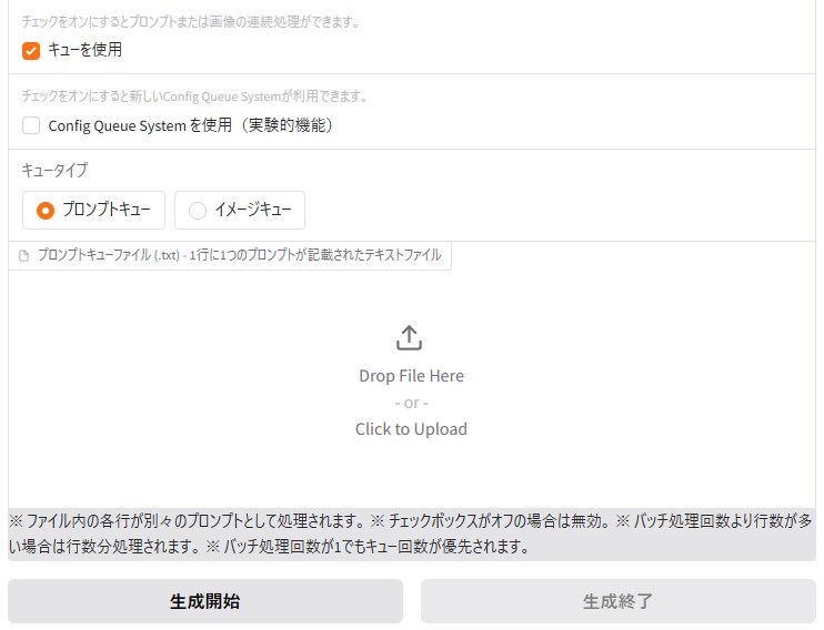 そうすると3枚目の画像のように、「キュータイプ」として「プロンプトキュー」と「イメージキュー」の2つから選べるようになっています。