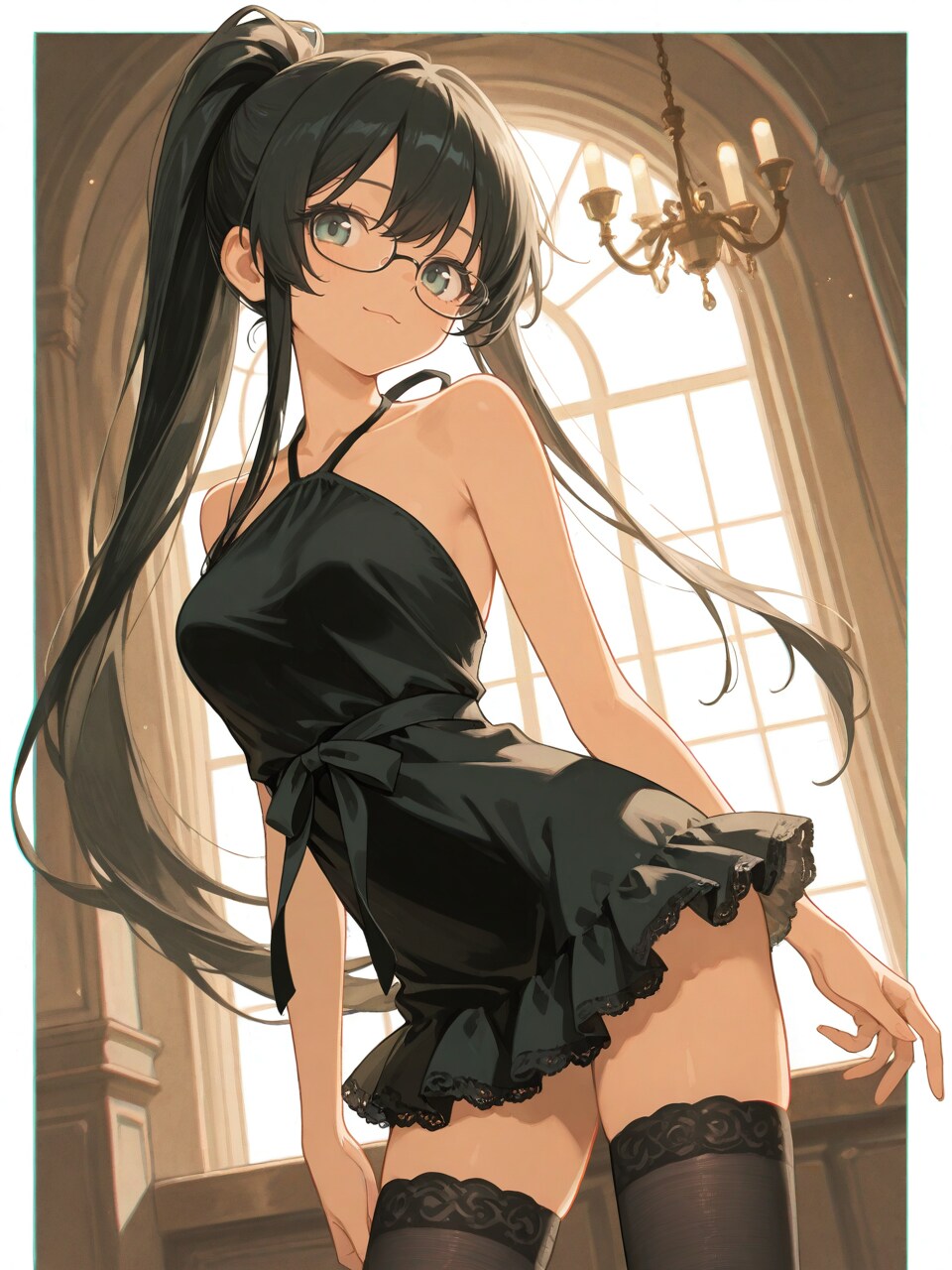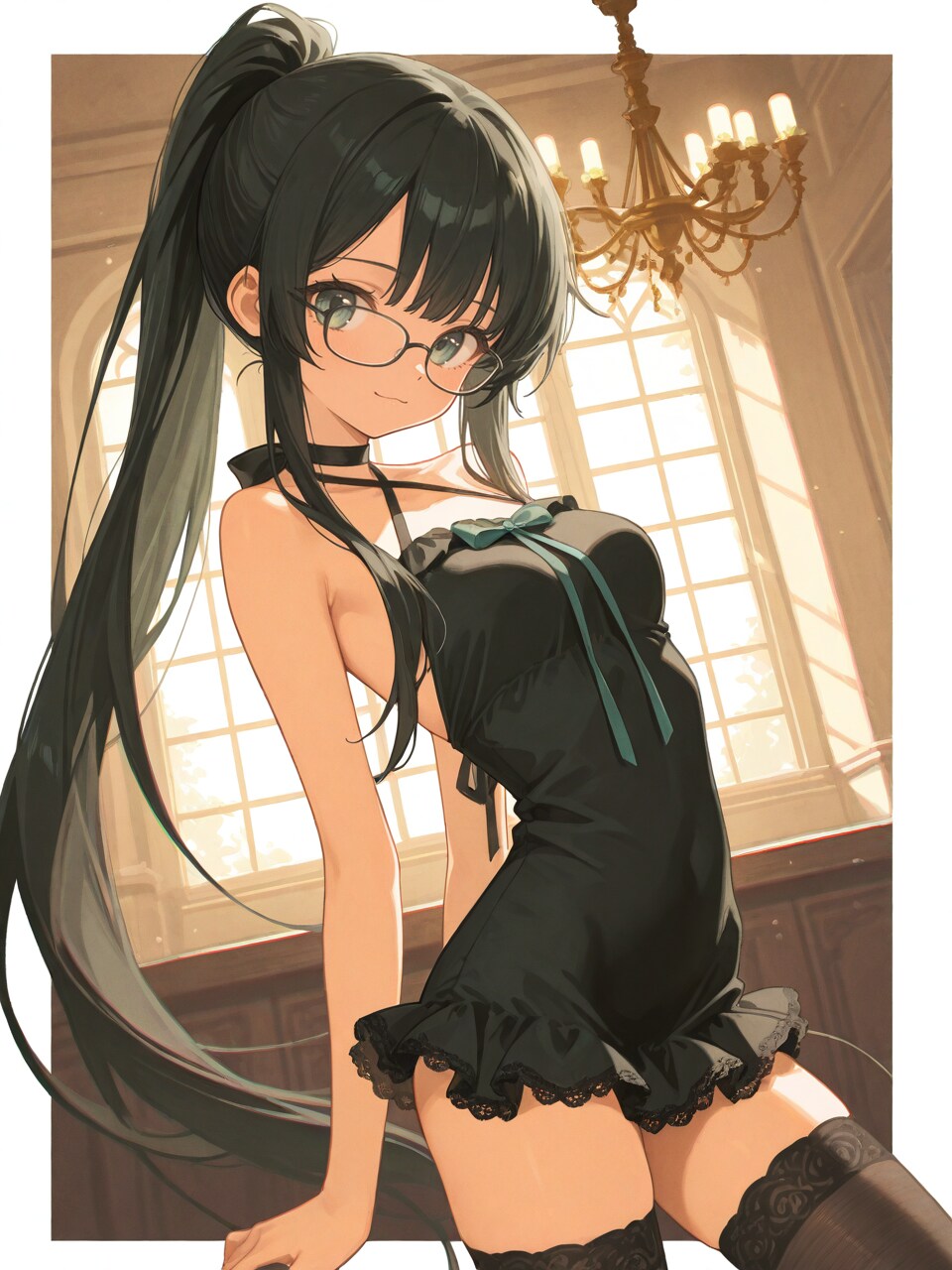 medium breasts, (narrow waist:0.9), dark thighhighs,
