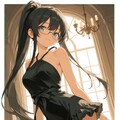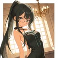 high ponytail, black hair, very long hair, long locks,