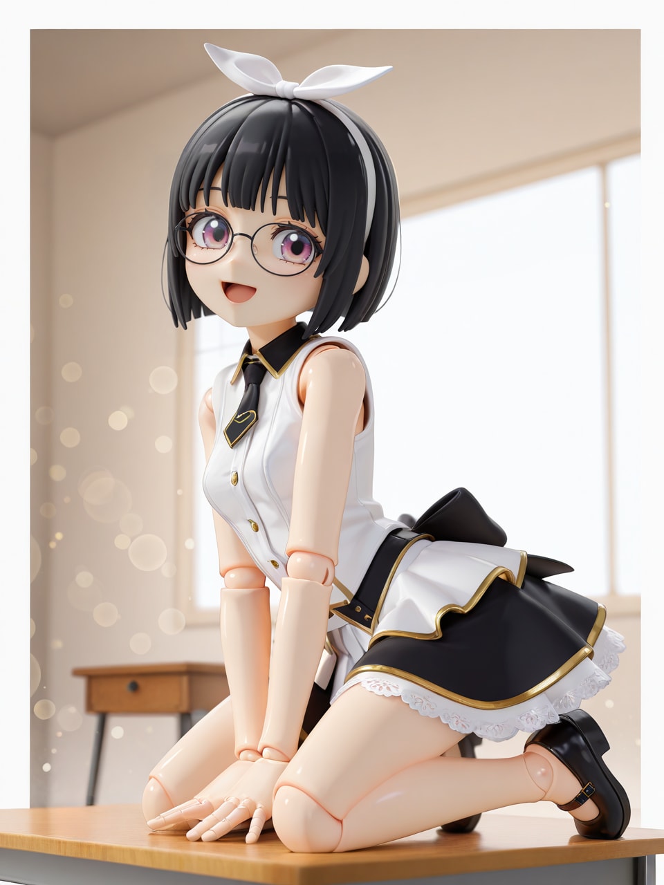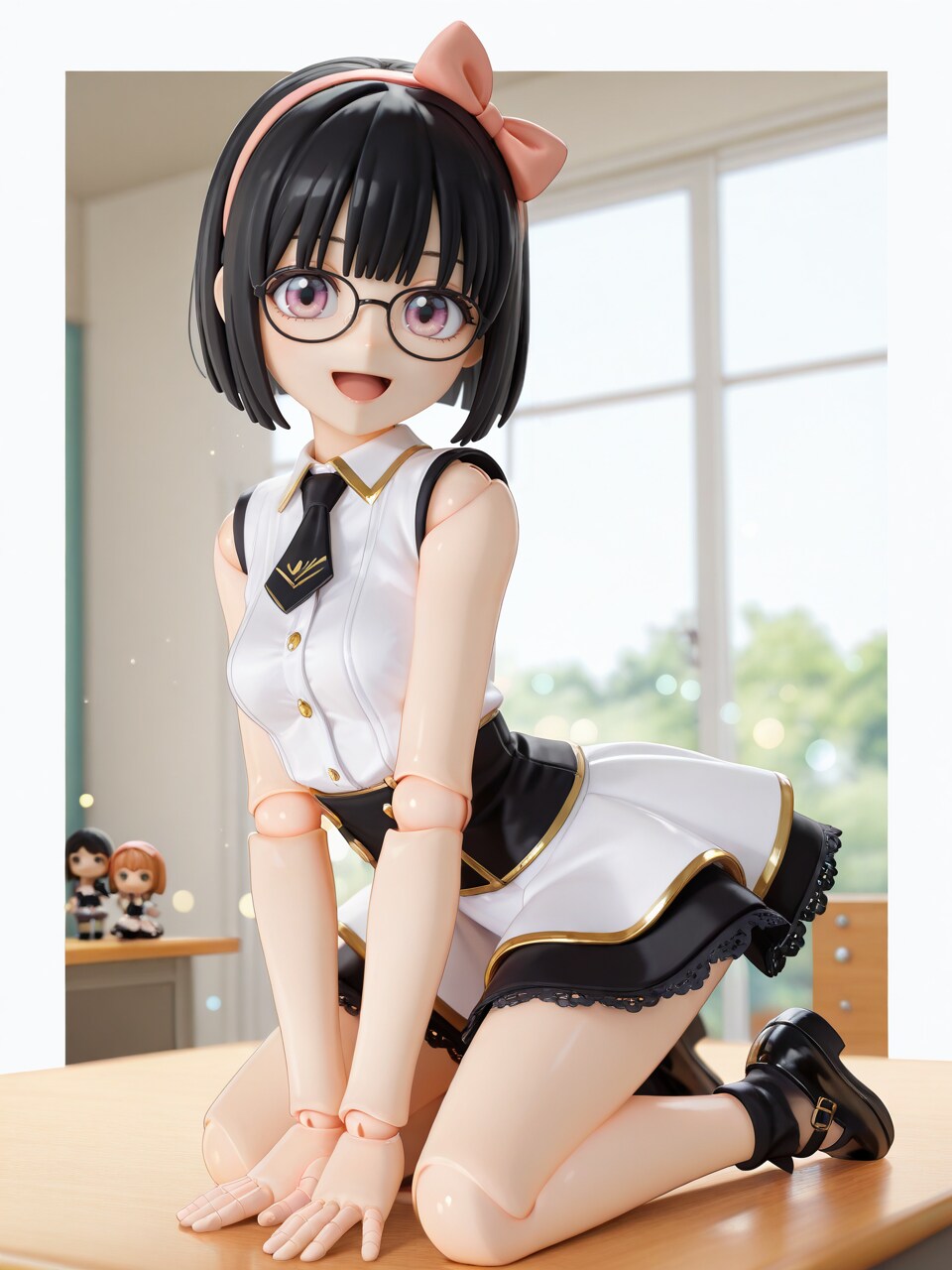 1girl, (solo:1.4), skinny, kneeling, full body, (miniature, figure:1.4),