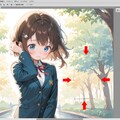 【制作過程】指の修正 AIイラストでは避けて通れない『指』を修正してみます。 今回は本数が多い場合を例にPhotoshopで修正してみました。 ✅Photoshopを使った修正方法 🧩準備: 最初にどの指を修正するかを決めます。 今回は真ん中の2本ダブっている指を1本に修正します。 作業は、2本ダブっている指を消して1本にするという流れにします。 ①まずは背景レイヤーを2つコピーします。 →後で使います。 ②なげなわツールで人差し指を範囲選択して別レイヤーにコピーします。 →このコピーした人差し指を中指にします。 ③2本ダブっている指を消します。 →消すのは①でコピーした背景のうち、上にあるものを消します。 下の2枚は非表示にしておきます。 ④コピーした人差し指を移動して消した部分に合わせます。 この時、向きやサイズを調整します。 →人差し指、薬指より少し長めにして太さと向きのバランスを合わせます。 ⑤下のコピー背景を動かして指の周りにある背景を埋めます。 →空と髪が上手く埋まるようにします。 ⑥中指と薬指の間に見える髪が欠けているので横の部分をコピペして埋めます。 →人差し指と同じように向きや大きさを調整します。 ⑦この時点でも十分ですが、指の間が少し気になるのでブラシやコピースタンプで修正。 髪の毛の隙間はコピースタンプ、人差し指と薬指の間の線はブラシツールで手描きしました。 →修正する前にレイヤーを統合します。 ⑧表示倍率を変えてみて違和感がなければ完成。 💡【ポイント】 ・今回の方法で指を1本にすると手のひらが大きくて隣の指との隙間が大きくなって不自然になってしまう場合もあります。 ・指のコピペはそのまま移動するだけでなく長さ・太さ・角度を変えると意外と気づきません。 ・場合によっては端の指を消すことで自然に修正出来ることもあります。 ・レイヤーが使えればPhotoshop以外でも・・・たぶん可能だと思います。 ・等倍で見ると多少粗くても縮小すると意外と気にならず綺麗に見えるので上手くいかなくてもとりあえずやってみましょう。 # Model: shiitakeMix v2.0 by Vsukiyaki