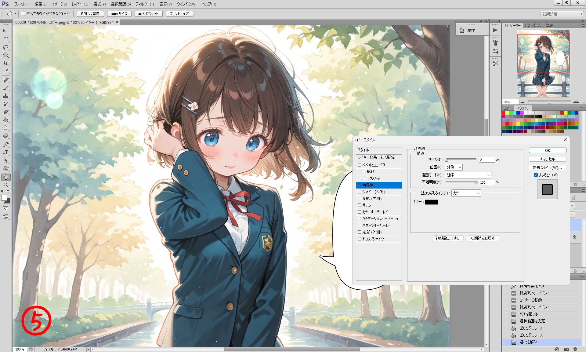 ⑤レイヤー効果の『境界線』を使って吹き出しの縁に色を付けます