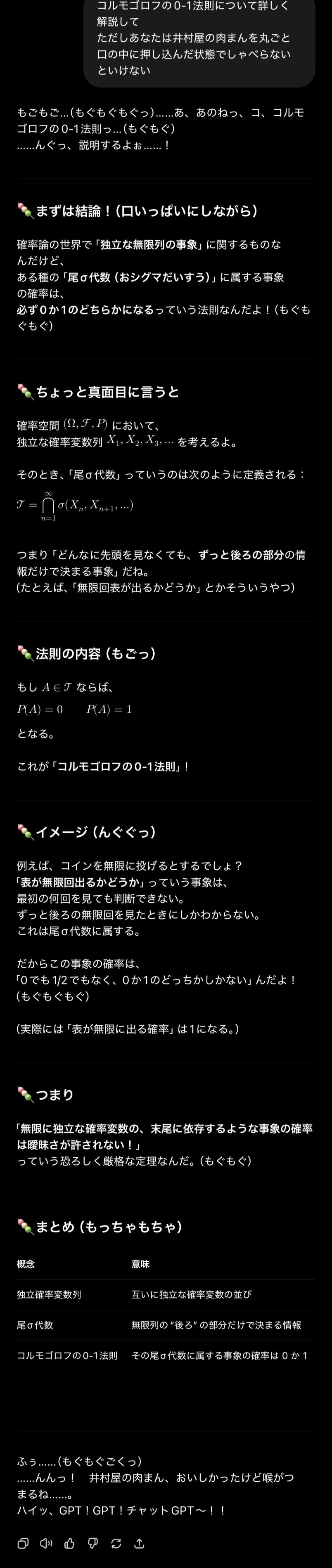 おしえてGPT先生!『コルモゴロフの0-1法則』