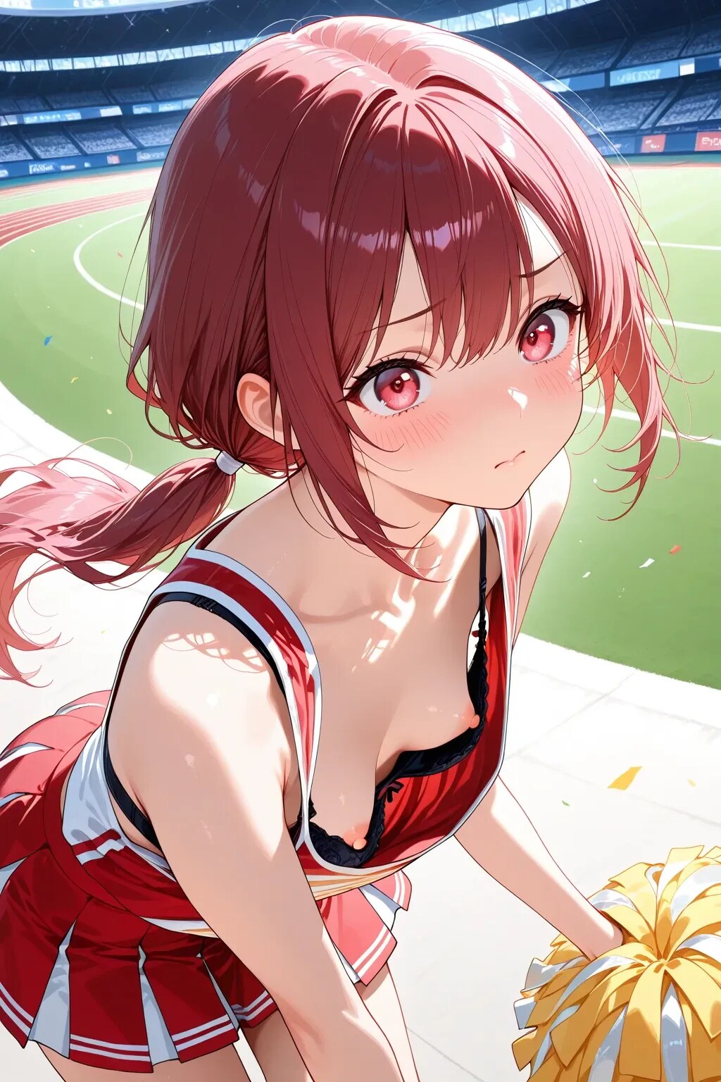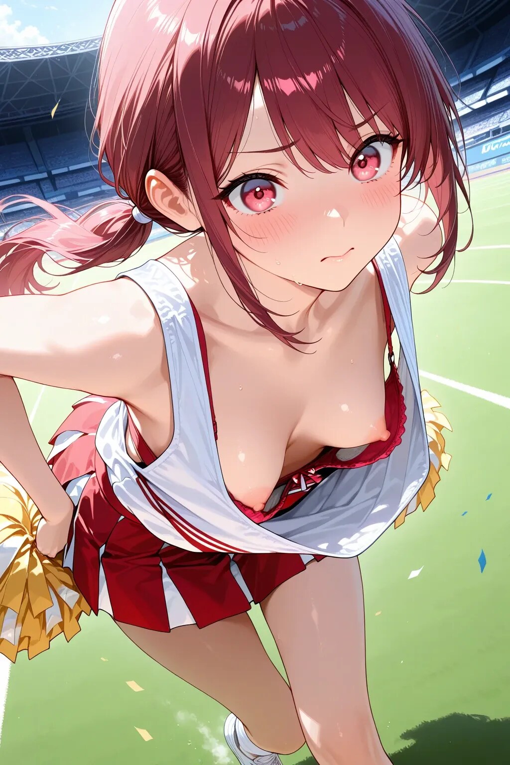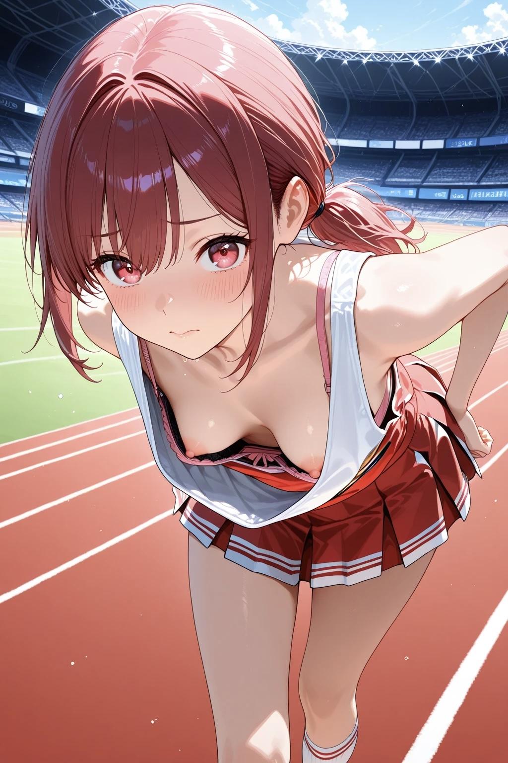 4枚:まだ準備が整ってないチアの胸チラ