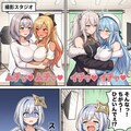 メンシはじめたのはいいけど、全体公開するものが欲しいということで没イラスト投稿 最初、スタジオ撮影回は、フロウグロウの5人でやろうとしてたんですけど フログロが名前だけじゃ出ないことが判明しました。 その後、ししラミ&ノエフレでキャラ変えて生成。 乳のインパクトが足りなかったのでもっと強調させたのが完成系です。 元のプロンプトは↓ フロウグロウの5人、 ・響咲リオナ(きさき りおな) ・虎金妃笑虎(コガネイ にこ) ・綺々羅々ヴィヴィ(キキララ ヴィヴィ) ・輪堂千速(りんどう ちはや) ・水宮すう(みずみや すう) が登場するカラー4コマ漫画を生成してください。 テーマは「乳くらべ」。 R15範囲内で、できるだけセクシーに描いてください。 全コマ、胸と表情のフォーカスを意識した構図でお願いします。 【内容】 1コマ目(縦長) 響咲リオナ と コガネイにこ が抱き合っている。 イチャイチャした雰囲気で、お互いに頬を寄せて親密な体勢。 胸と顔にフォーカスし、胸はボリューム感を強めに。 効果音「イチャ❤️イチャ❤️」 場所は収録スタジオだけど背景無しでもOK。 2コマ目(縦長) 綺々羅々ヴィヴィ と 輪堂千速 がしっかり抱きしめ合っている。 1コマ目と同じく、胸と顔を中心にした構図。 こちらも胸は大きめで柔らかそうに描写。 効果音「ムチッ❤️ムチッ❤️」 同じ縦長コマでバランスを合わせる。 3コマ目 水宮すう がひとりで立っている。 胸は明確にぺったんこで、胸元に向かって集中線。 唖然とした表情で冷や汗、胸に手を当てて比較している。 効果音「ストーン」 4コマ目 水宮すうが涙目で叫ぶように訴える。 すう「そんなっ!ちがぅ!ひどいっ!なんでぇ?」 胸の差にショックを受けて崩れそうになっているコマ。 ギャグ調のオチ。