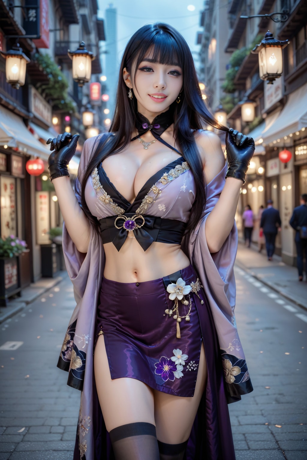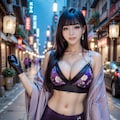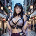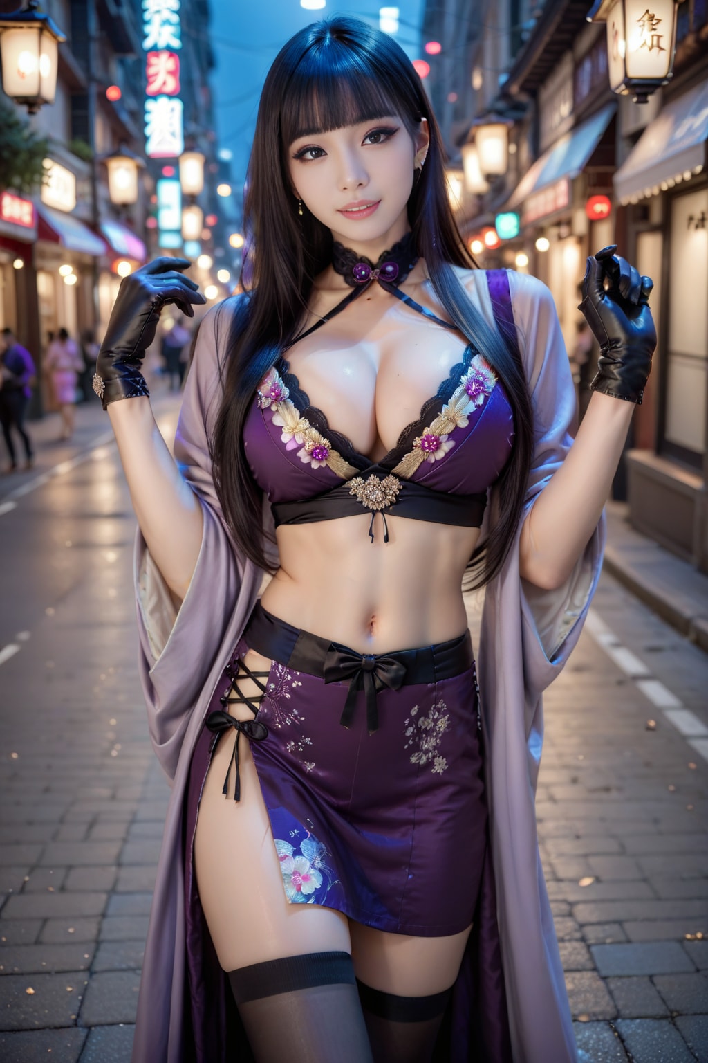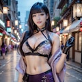 紫の和風ドレスの美女