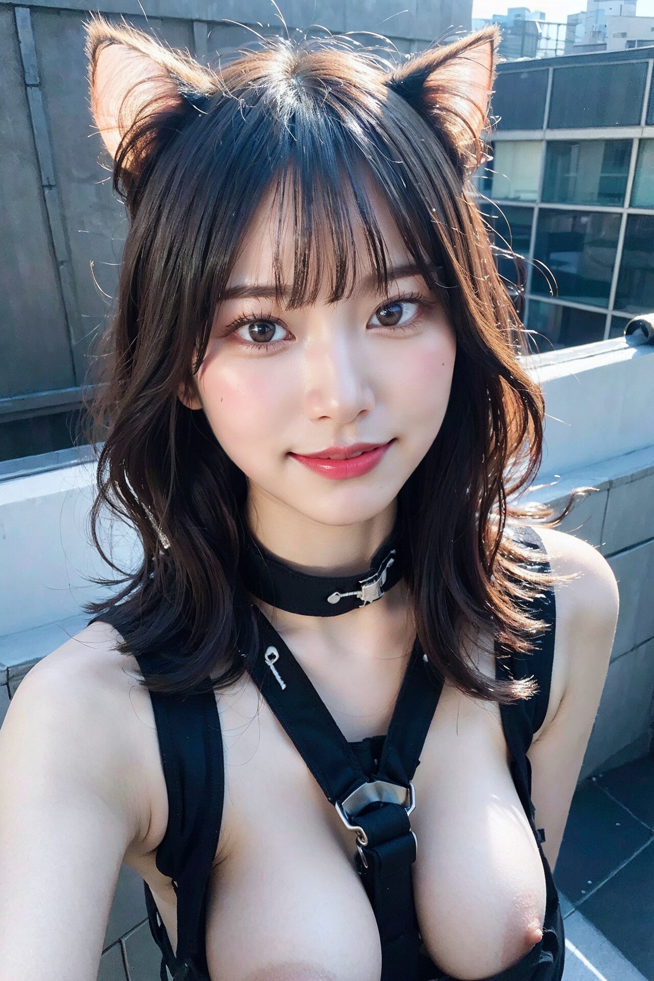 ラテックスボディースーツでポロリ 拡大版