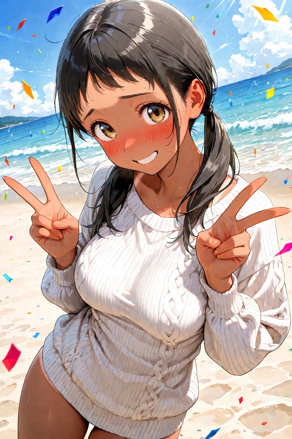 本投稿7月6日~8月12日までの間の未公開シーンや、投稿しようと思ったけどしなかったイラストなど投下します。 没集なので暇な人だけみてね♪(⩌⩊‹ )✨ 誰も見なかったとしてもイラスト供養の意味も込めて🙏のその⑥ もし見てくれてる人がいて、リクエストとか、質問とかあれば何でもコメントして下さい。 後関係ない雑談とかでもOKです! 前回に引き続き、よその子やコラボした時に生成して採用しなかったものも投稿します!😆 ※該当する方の中で不快に思われる方が居ましたら、コメント下さればすぐに投稿削除をします! 実はナオえもんさんちの美桜さんとのコラボは色々作っていました!(≧∇≦) アオイさんちのあかねさんやルミさんも同様に、採用しなかった色んな衣装も実はもっとあったりして…(*'ω'*) 13、14枚目に真子お姉ちゃんが居ますが実はもうこの時にはプロンプトが完成してました! 正式に登場させたのは9月19日ですが、生成したのは7月16日でしたwww 後4枚目に未だデビューしていない『奥戸ちゃん(仮)』が居ます。 この子は、幸多さん誕生の時に一番最初に生成された幸多さんプロトタイプの子です🐙 初めは色白のツンデレクールキャラでした✨↓ https://www.chichi-pui.com/posts/07216056-790c-4f5e-ae2b-850cf1e0504d/ この子ももしかしたら今後、本投稿の方に出て来るかもしれませんね😊