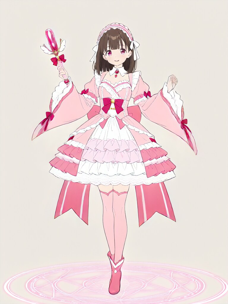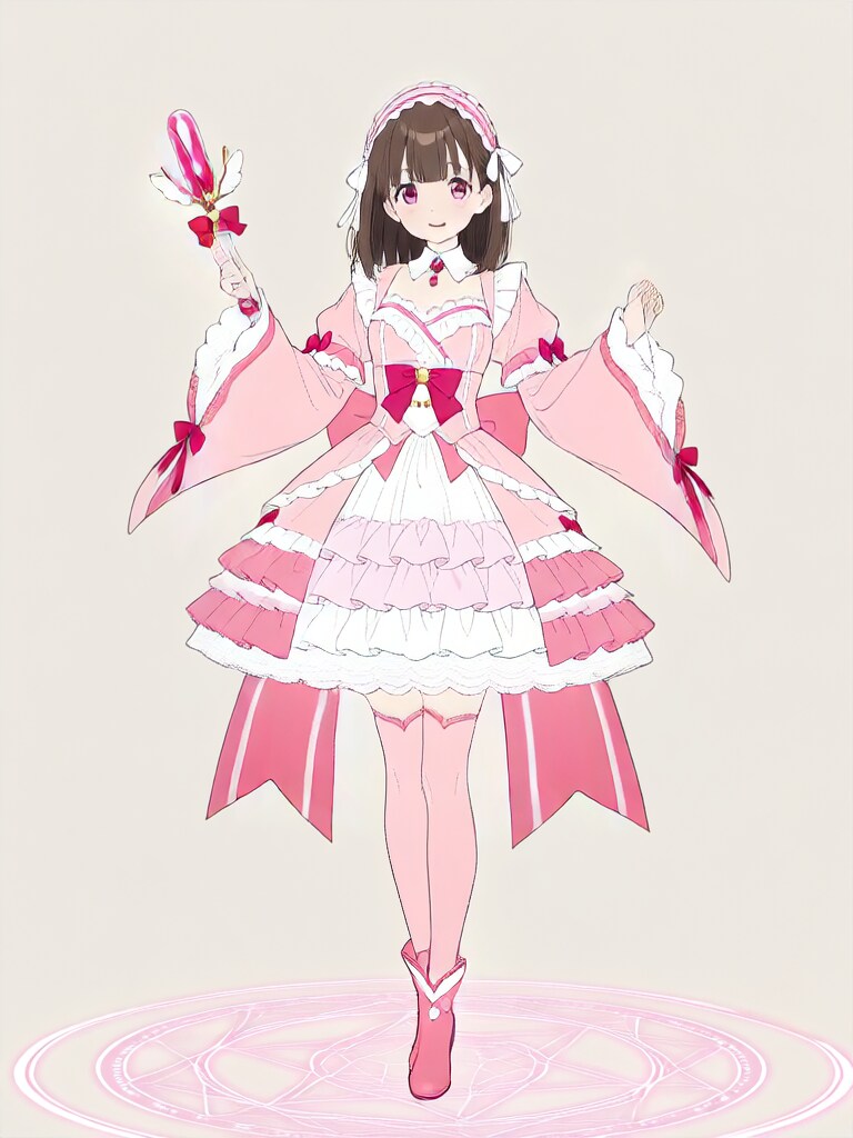 初代無料キャラのパープルちゃん 私としては珍しい金髪以外のキャラです 無料キャラの投稿企画に応募したくて考えた子です 金髪で出すとそのままアリスになってしまうので紫髪にしました 同時期にオレンジちゃんという子も居たのですが、パープルちゃんの方が生成簡単なので選びました 【呪文】 Anime, 1girl, long hair, red eyes, Big eyes:1.5, happy smile, (purple hair), (two side up hair), (shiny wavy hair), the bow, hair between eyes, white gothic dresses, crinoline dress, (Very big rabbit ears, hairband), long-sleeves, puffy sleeves, apron dress, frilled, purple hem dress, wrist cuffs, neck ribbon, ((brooch)), ◆初期版 詳細な説明はこちらを参照 https://www.chichi-pui.com/posts/67f0a33d-3316-46ac-806b-068edb9d7c4a/ 生成したらコメント戴けると嬉しいです