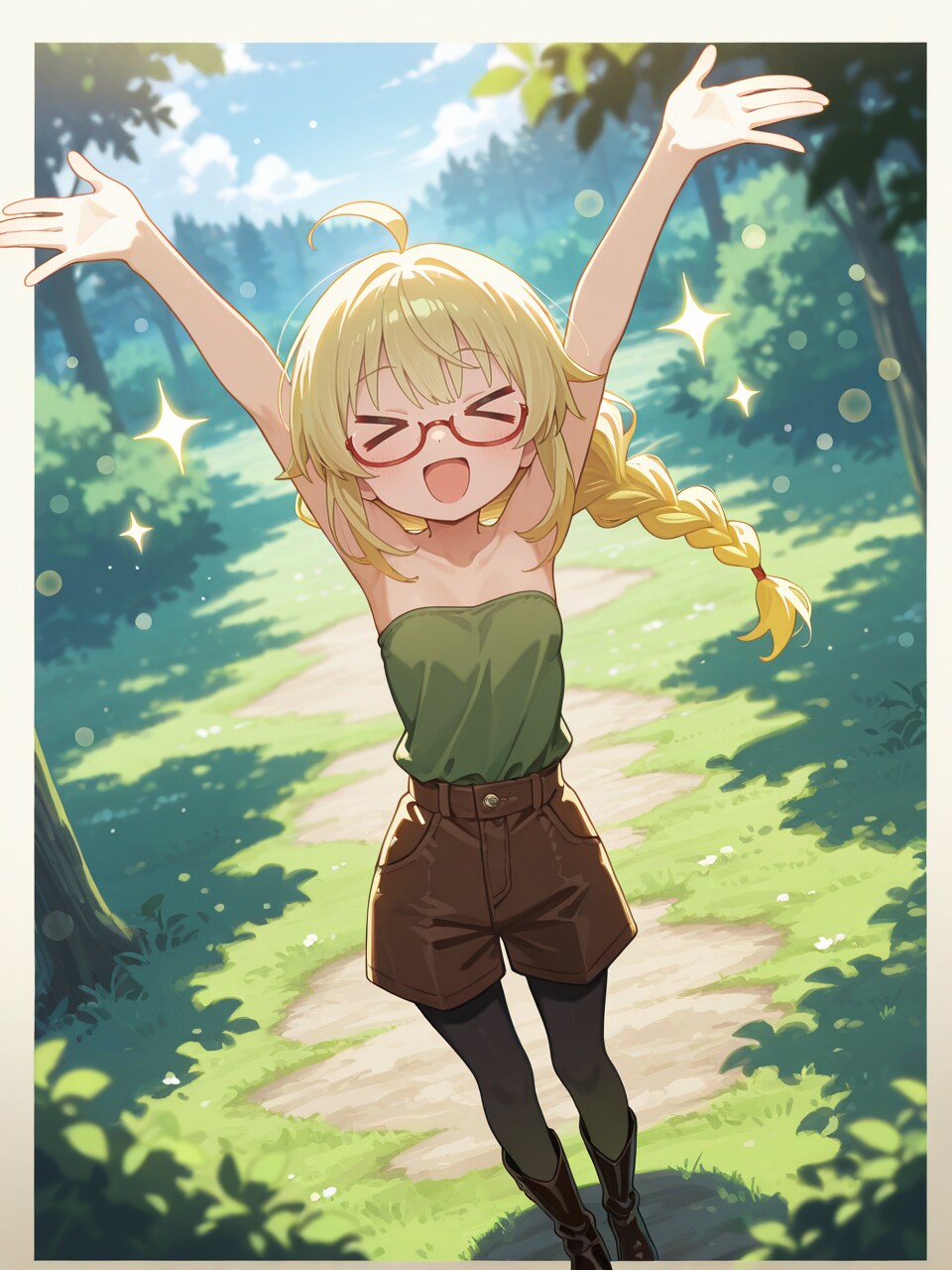 - 微妙な髪色は`[blonde hair:green hair:0.8]`の数字を調整しながら頑張った!👉️