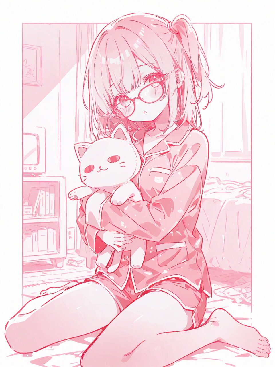 (gradient lineart:1.4), (sketch:1.4), pink theme
