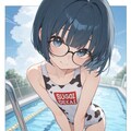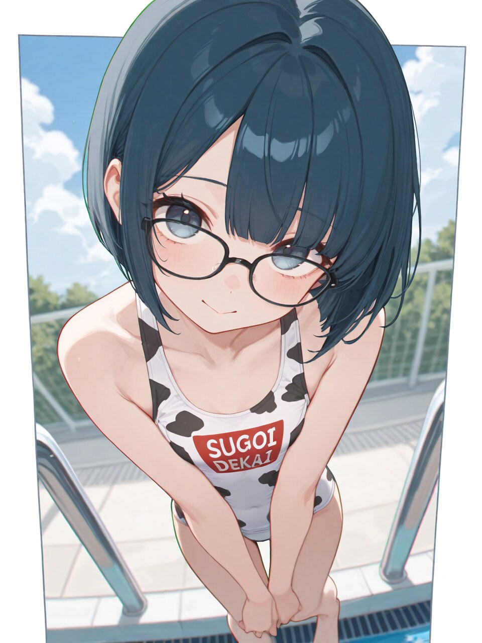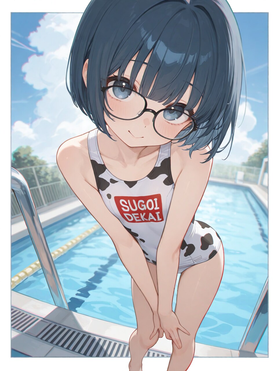 white school swimsuit, (cow print swimsuit:1.1), sugoi dekai,