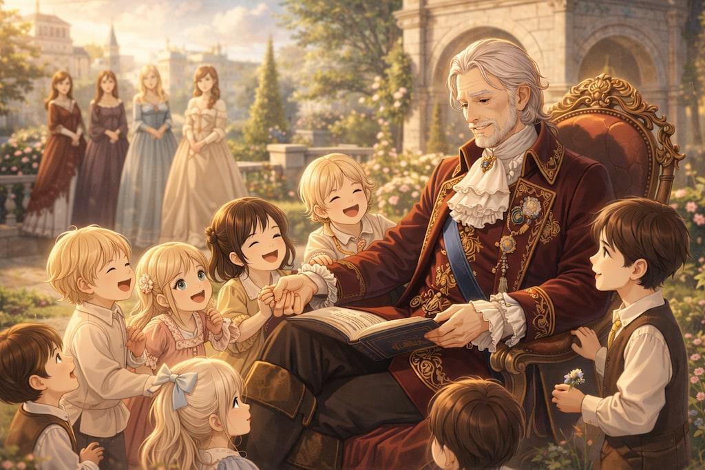 中世ヨーロッパをベースにした世界で戦乱の時代に周辺を侵略するタイラント、彼の後宮を舞台にしたシリーズです。 中央の白髪の偉そうなのが覇王でアレクサンドル6世やヘンリー8世の様な好色暴君です。 彼の後宮には数十人の愛人が生活し子供の数は100人を軽く超えています。 ハーレムものですがChatGPTのセンシティブ判定をギリギリで躱しながら作成したので露骨な表現は含まれていません。