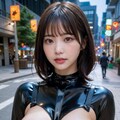 ラテックスボディースーツでポロリ 拡大版