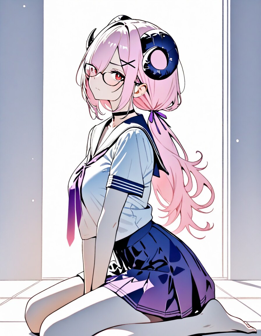 20251114【5枚】紺色のセーラー服とマスクの女性