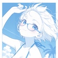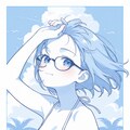 (blue theme:1.2), (monochrome:1.4), spot color, blush