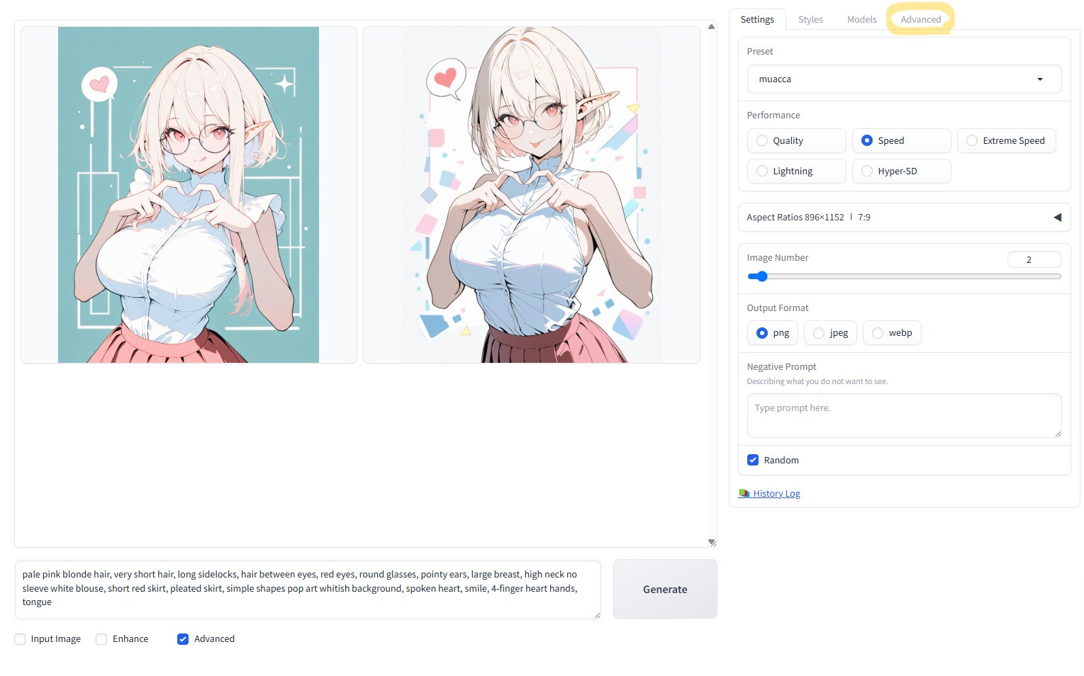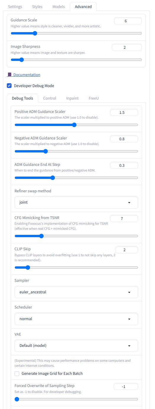 Fooocusの画面右上の「Advanced」タブを開きます。(4枚目)