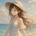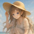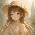 (masterpiece:1.4), (ultra quality:1.3), 16k, (super detailed:1.5), anime style, semi-realistic shading, fantasy,儚げなキャラクター、 soft lighting, glowing highlights, translucent layers, detailed clothing、少女、一人 、微笑み、麦わら帽子、