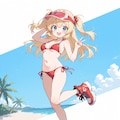 ✨赤いビキニにサンバイザーを被っただけでなんか可愛らしくなってしまったお気に入りイラストです。