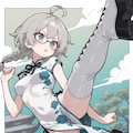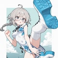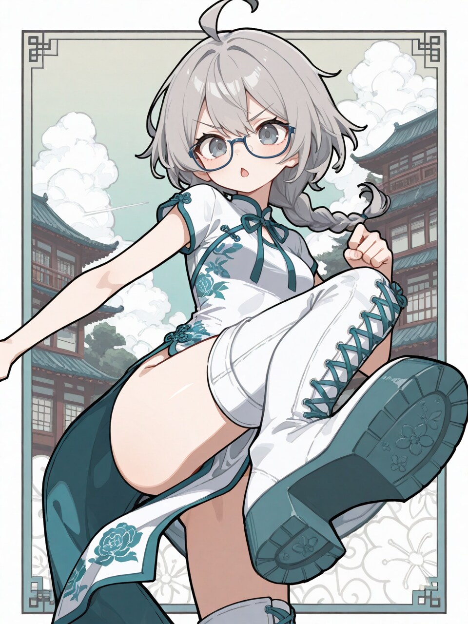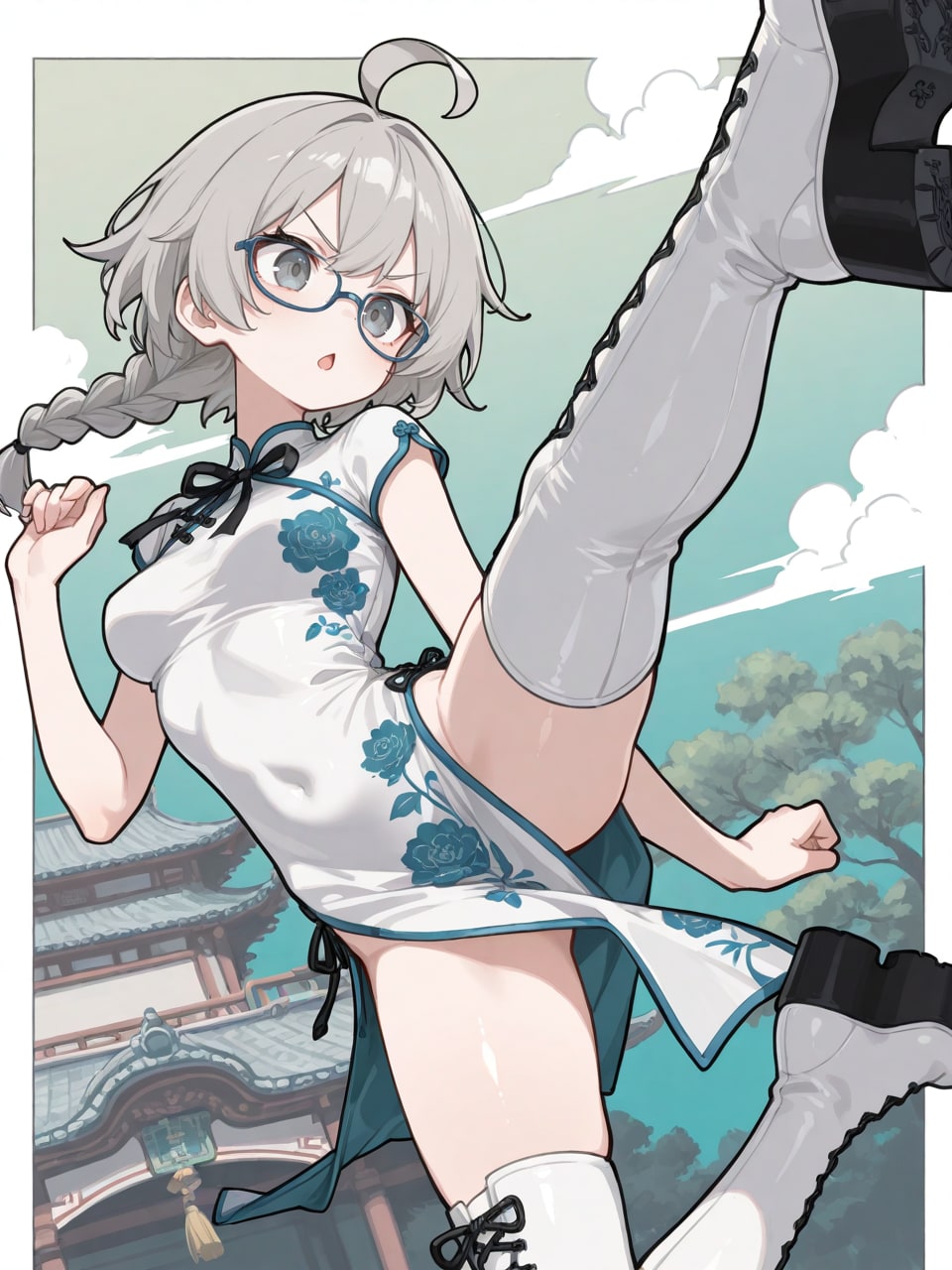 grey hair, (single braid:1.1), ahoge,
