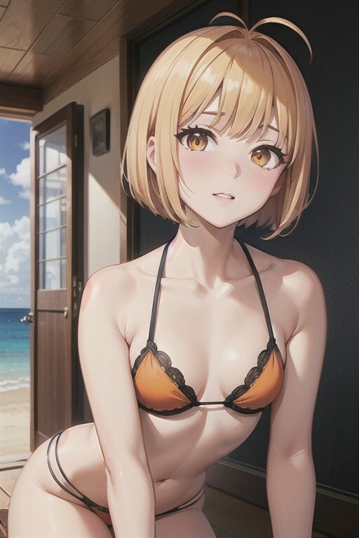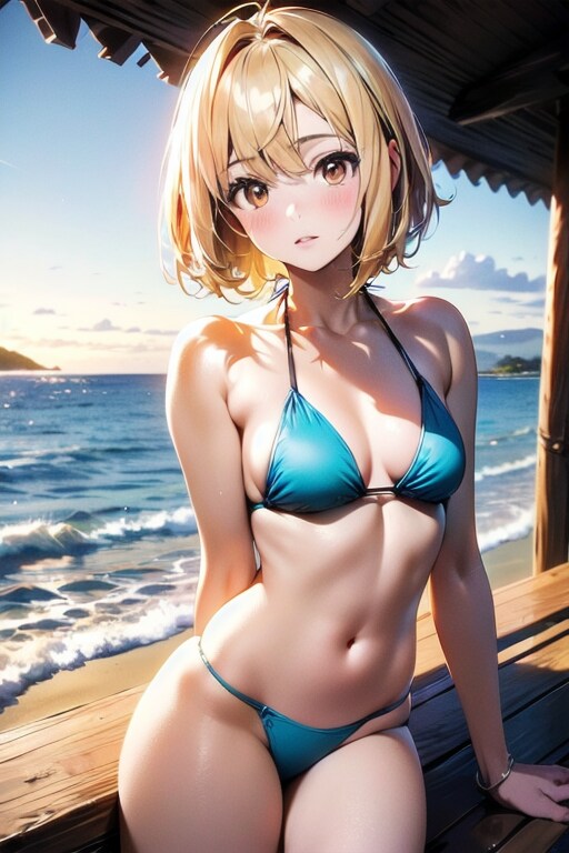 20260114【5枚】ピンクのビキニとスタジャン風カーディガンの女性(牛乳瓶)
