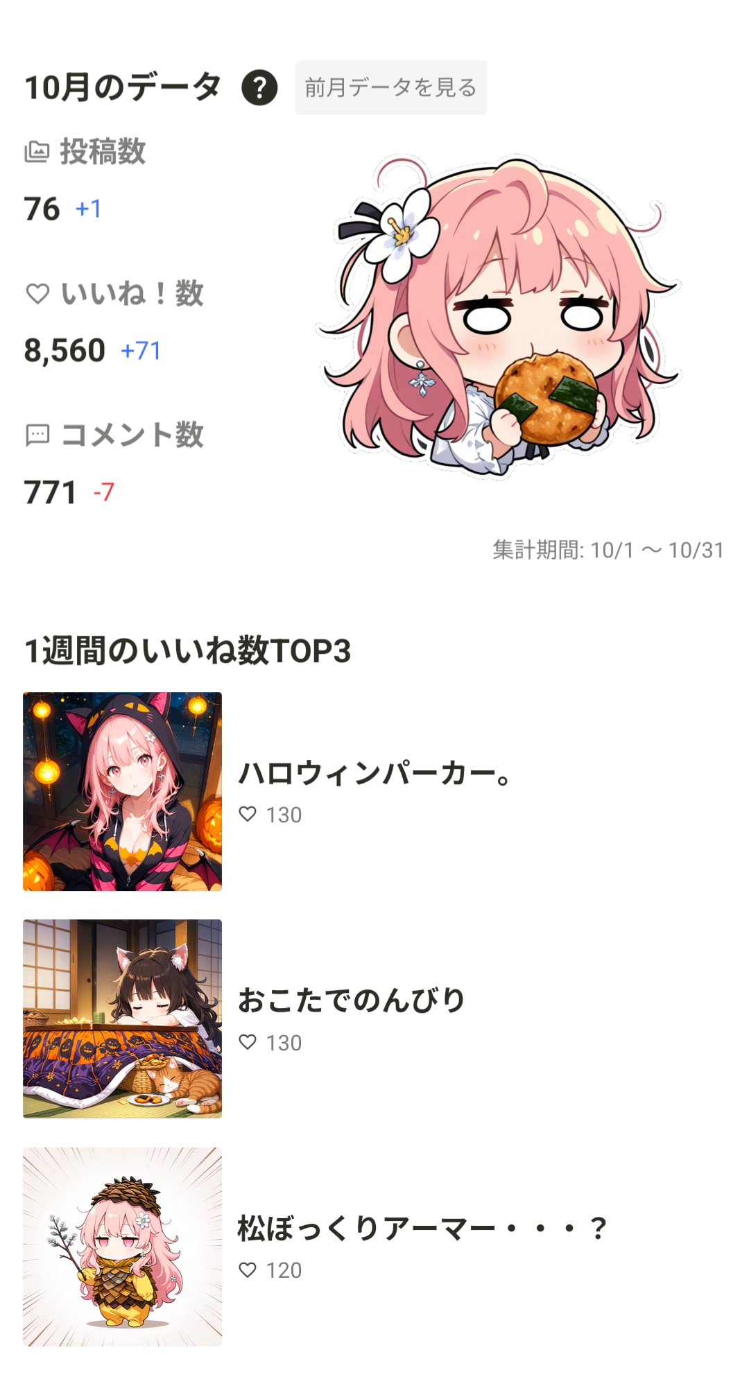 11月もこっそり実績投稿してみました。 11月はやっちゃいなチャイナ企画、本当にたくさんのご投稿ありがとうございました。 もう12月。次の実績投稿はお正月だったりかもと思うと時の早さに((((;゚Д゚))))ガクガクブルブル