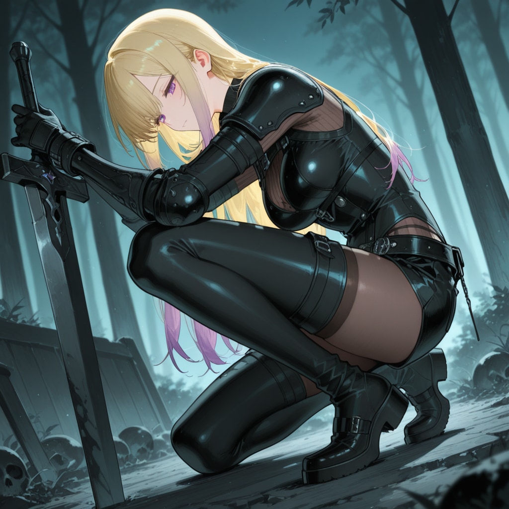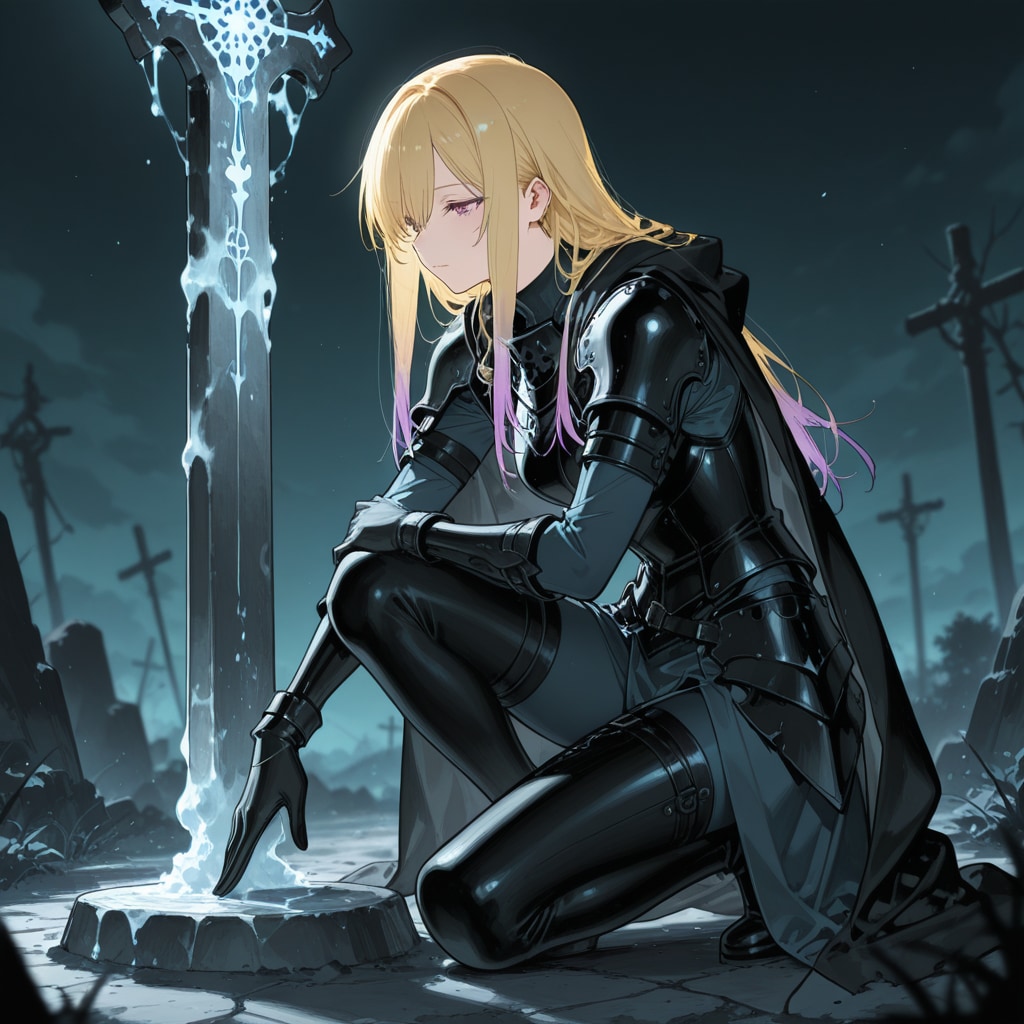 初代無料キャラのパープルちゃん 私としては珍しい金髪以外のキャラです 無料キャラの投稿企画に応募したくて考えた子です 金髪で出すとそのままアリスになってしまうので紫髪にしました 同時期にオレンジちゃんという子も居たのですが、パープルちゃんの方が生成簡単なので選びました 【呪文】 Anime, 1girl, long hair, red eyes, Big eyes:1.5, happy smile, (purple hair), (two side up hair), (shiny wavy hair), the bow, hair between eyes, white gothic dresses, crinoline dress, (Very big rabbit ears, hairband), long-sleeves, puffy sleeves, apron dress, frilled, purple hem dress, wrist cuffs, neck ribbon, ((brooch)), ◆初期版 詳細な説明はこちらを参照 https://www.chichi-pui.com/posts/67f0a33d-3316-46ac-806b-068edb9d7c4a/ 生成したらコメント戴けると嬉しいです