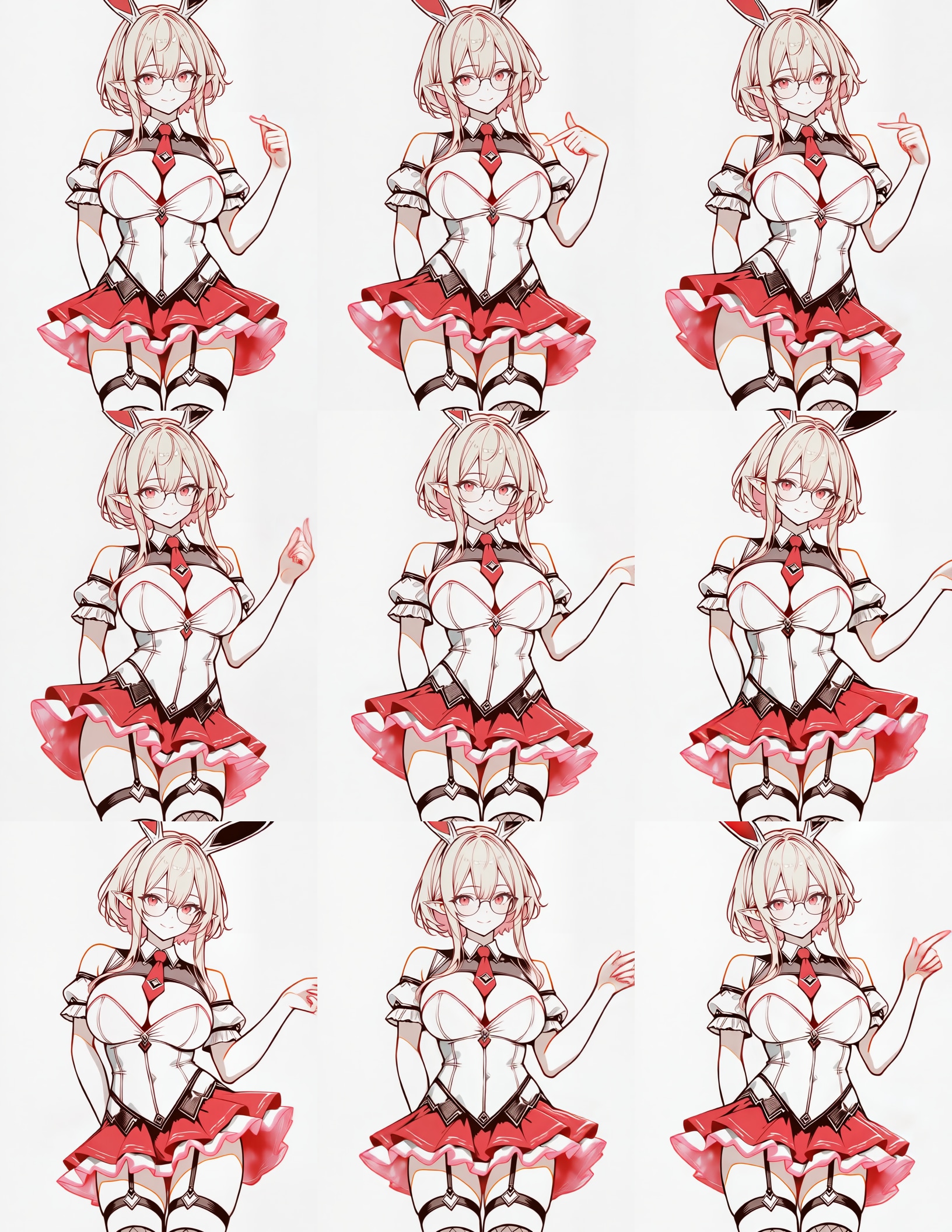 A character dancing slowly, her soft breasts bouncing wildly, arms gesture up and down, expressively pointing confidently, and sweeping dramatically through the air, sways upper body from side to side, wiggles hips.