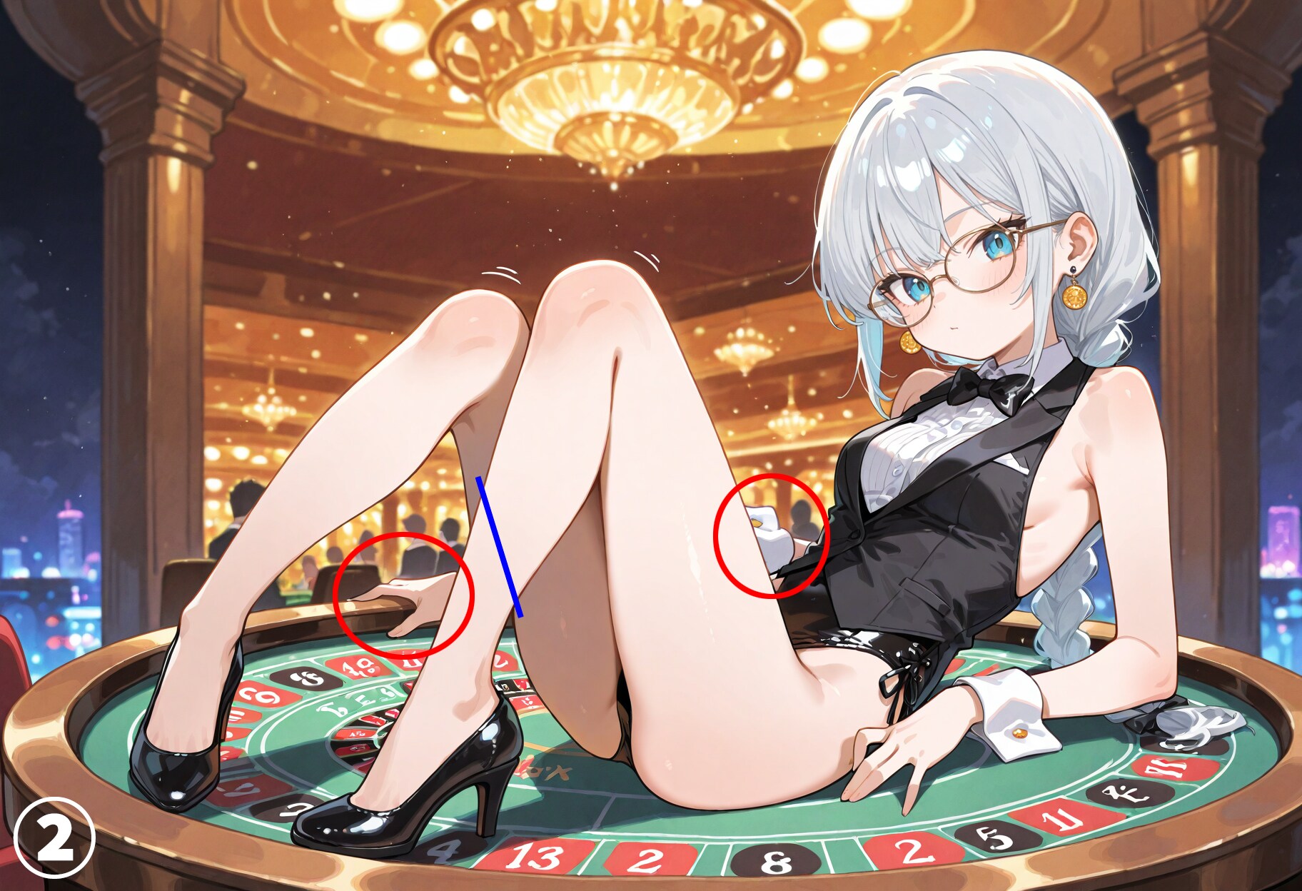 →赤丸部分か、太ももの上部分のどちらかを消しますが、だいたい上手くいかずに作り直しに・・・