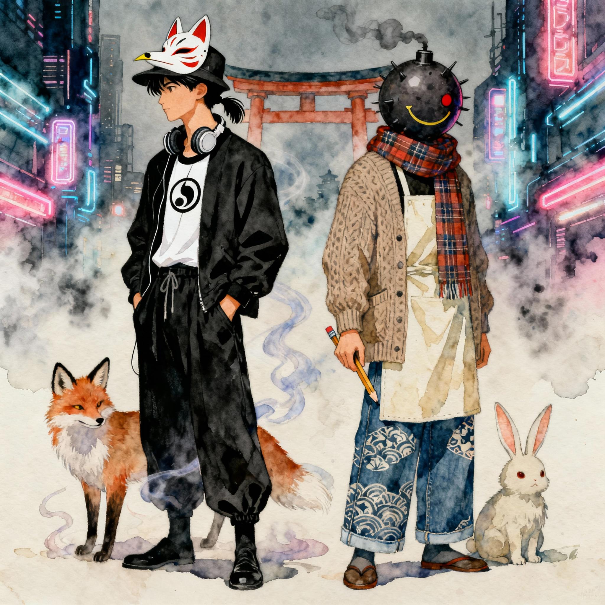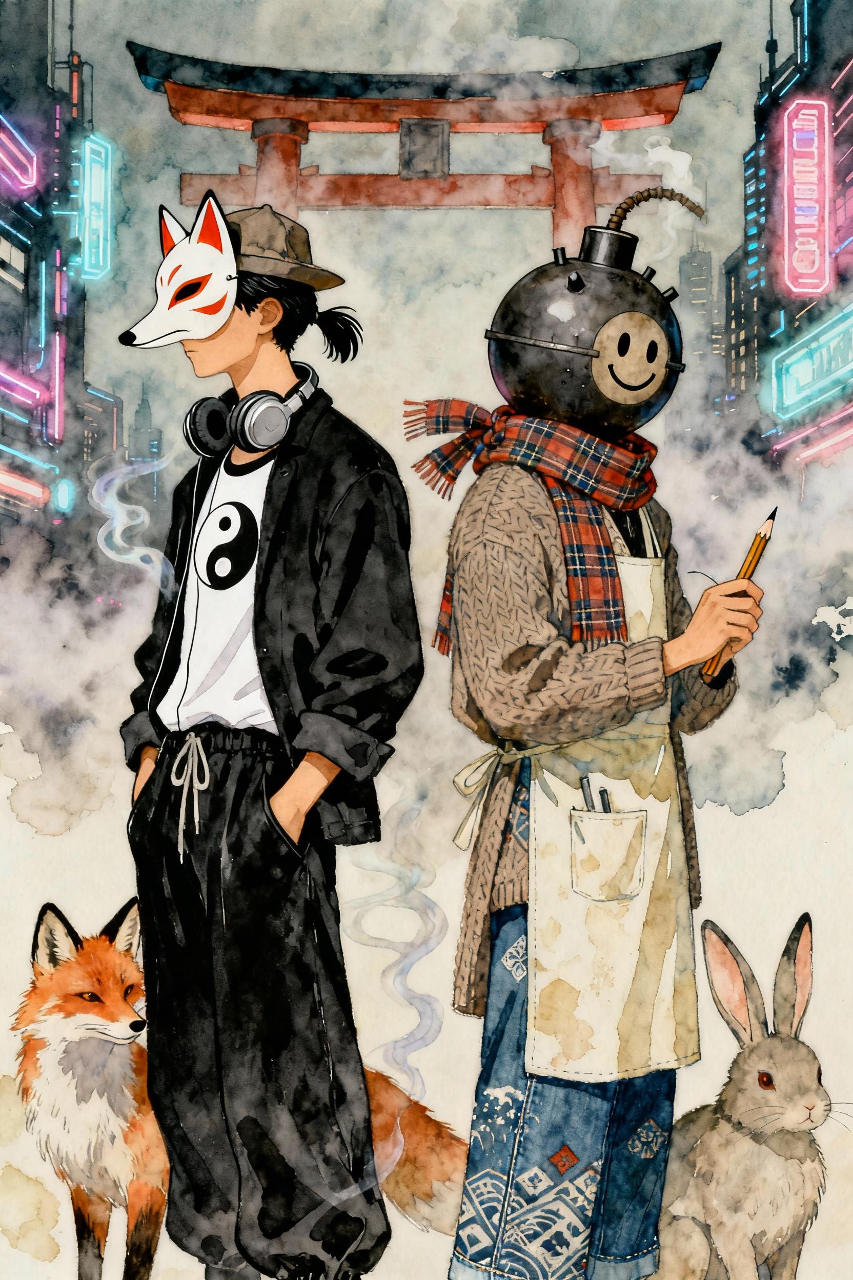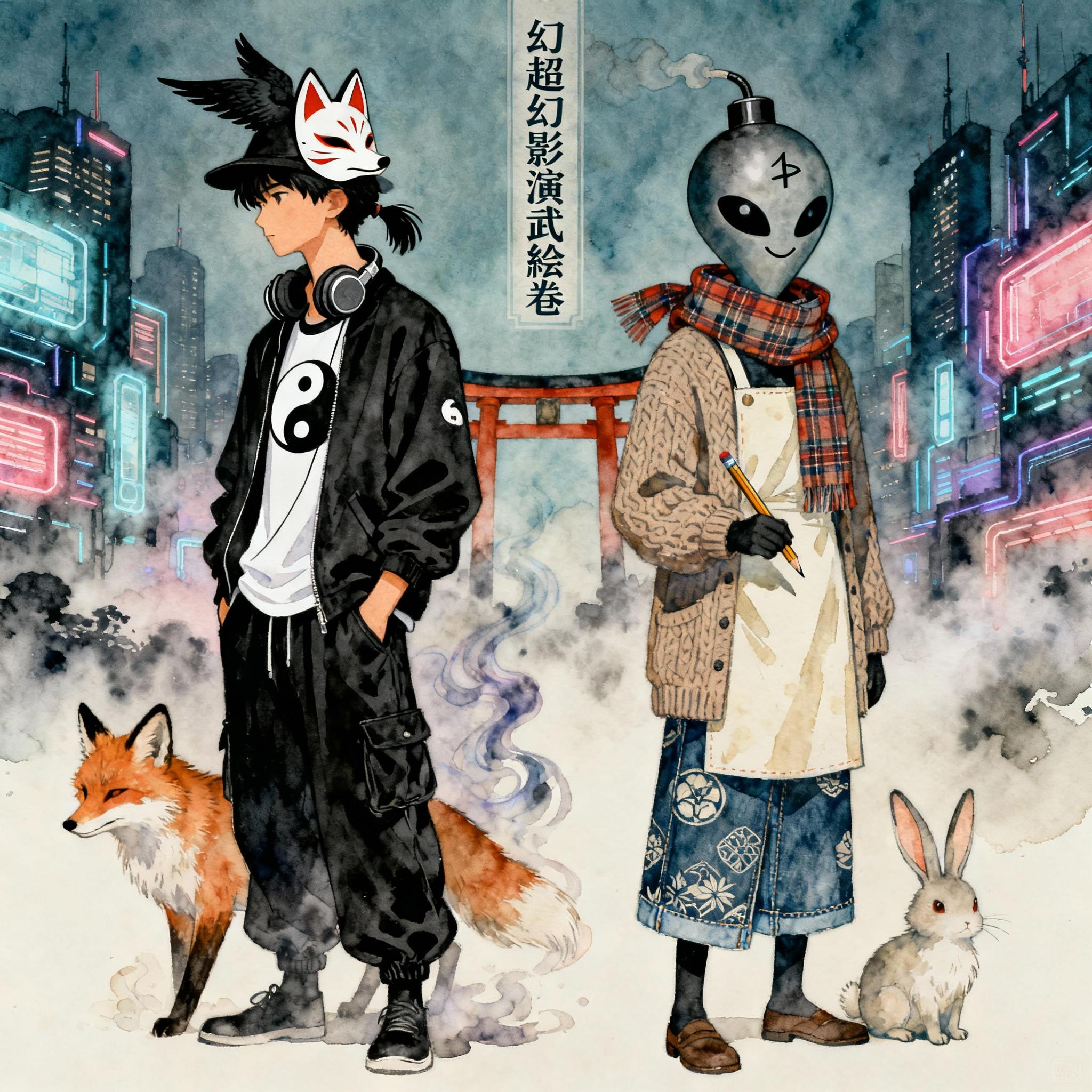 【絵物語】 https://www.chichi-pui.com/posts/db0f7cf9-6a3b-42e2-b3c6-f2647aca41df/ を制作し終えて この物語の主人公は、爆発先生でもあり、冴記弦悠でもある。 だから、群像劇的な手法に近く、 今回の制作を通して、 私は一主人公に焦点を当てた物語よりも群像劇的な物語が、好きなのだということが分かった。 一人よがりにチートスキルを連発するよりも、苦悩しながらも、苦戦しながらも、成長していく、少年漫画、そう、ジャンプのような王道の漫画が好きなのだ。 しかし、其はもう一人の自分が言っているわけで、またある自分はこう言うのだ。 「王道や型にはまったものは好きなのか?」 邪道が好きなのか? そうではない 型に外れた物語には意外性があって好きだし…と、ここまでで 脱線していることに気づく 定められし約束事(プロット) など決めてはないし、 面場吾船(メンバーシップ) に乗り込みし者は、 総じて、よほど、好きでなくては来ないのだから、 そもそも、表世界とは違う 箱庭が面場吾船(メンバーシップ)なのであり、自由気ままに、徒然草の如く綴ってるのが、私の原点であり信条なのだ。 しかし、何らかの指針(コンパス)がなければ迷い子の如く、仮定的に読者が此を読んだ場合、迷子になってしまったらいけないため、 今回の作品に関して、どんなことをしたのか、どのように制作したのかを話せたらいいなと思う。 まず、今回、使用したツールは ちちぷい生成機能Seedream(生成) Gemini(i2i) SunoAI(音楽) Grok(動画) InShot(動画編集) を駆使してスマホで制作したものだ。 特に私が、今回の制作を通じて ワクワクさせたのは、SunoAIが 今までVer.3.0が無料の領域だったが、久しぶりに使用してみるとVer.4.5が無料となっており、なおかつ、時間が4分を越えるとぶつ切りになったのに対し、4分以上、音楽を生成してくれるようになった。 これが嬉しいもので、機械チックだったのが、滑らかなサウンドで構築するようになってテンションが上がり、曲がかっこよく生成できたら、次は、動画だ! と、なったもので、この時点で、 誰かのためじゃない、 自分のために、 自分の心をワクワクさせるための MVを作りたいと、 無我夢中で制作していた。 で、完成し、プレミア公開をしてみることで、ちょっとアーティストのMVを楽しみにするような、ワクワク感がたまらず、今の心はときめいている。 と、日曜日が終わるなかで、 今回はMVを作ることができ達成感に浸りながら、ひとまず、前進したかなと感じるもので、気が向いたら今後もMVを制作してみようかなと思った次第です。 GrokとSunoAIは、AI生成の世界を広げたなと感じたもので、今後も面白そうなツールが増えたら、 AI関連のニュースを見て、確認しながら、いつか、ゲーム的なものもAIでできたらいいななどと空想を膨らませつつといったところで、今回のあとがきとさせていただきます。