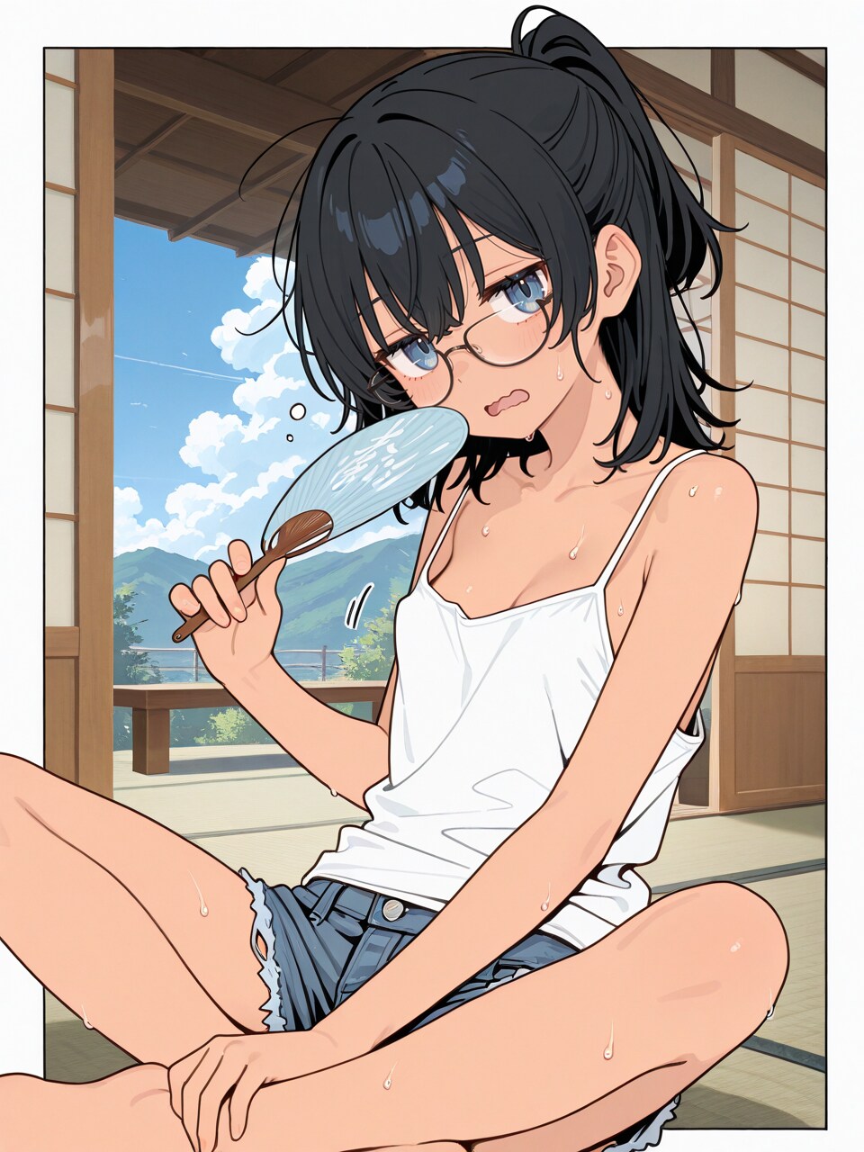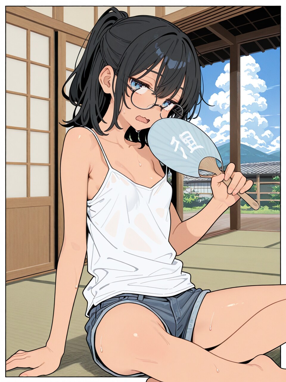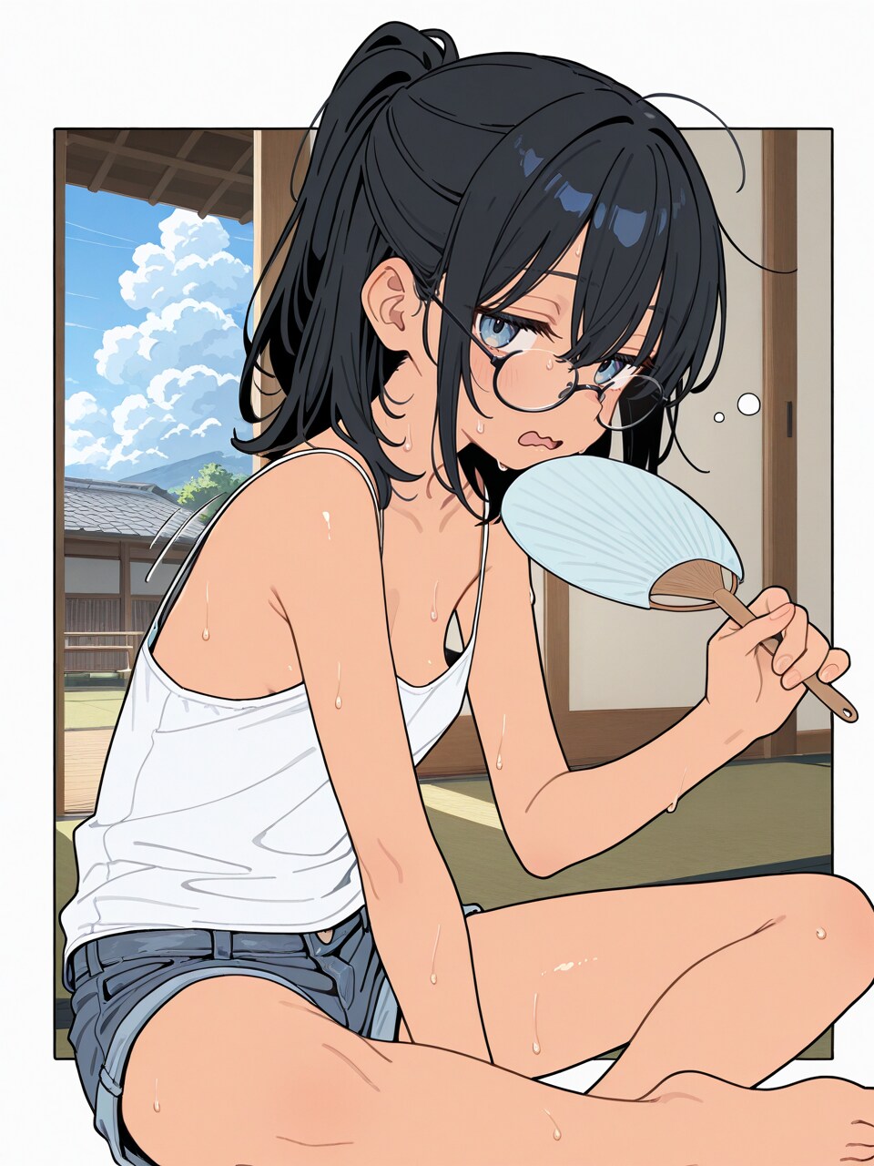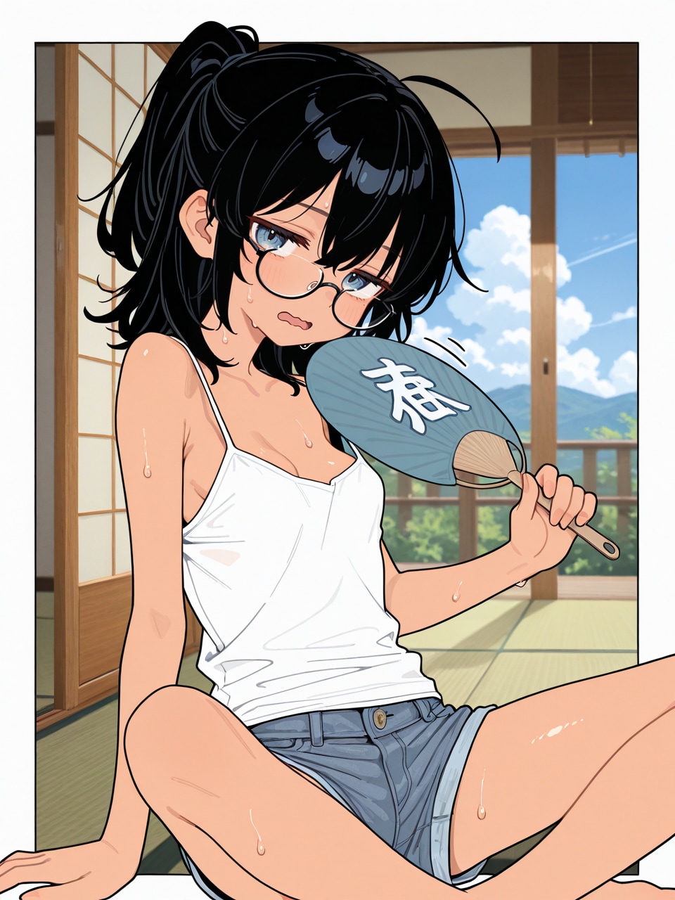 (glasses:1.1), (///:1.1), jitome, tired, very sweaty,