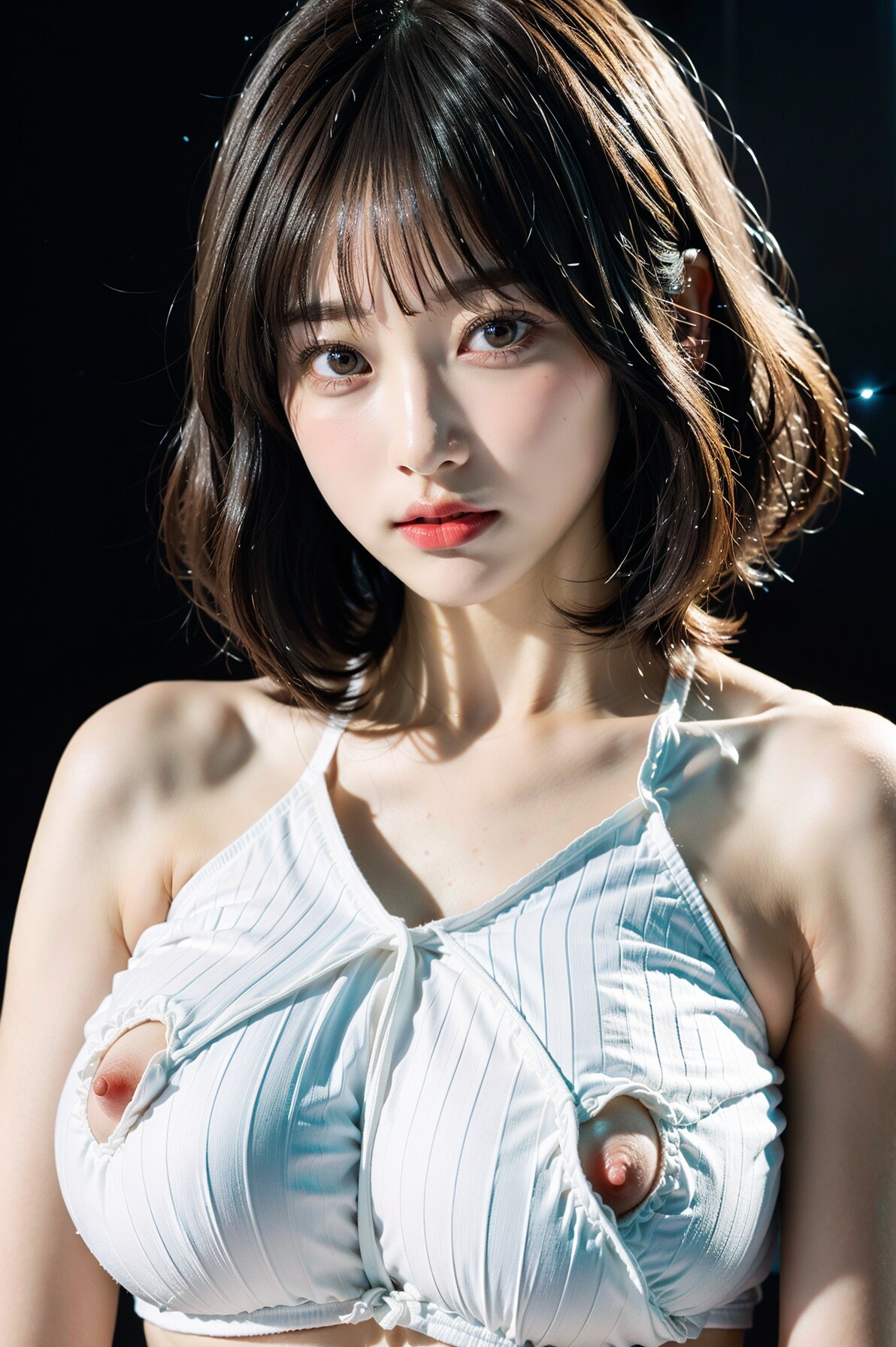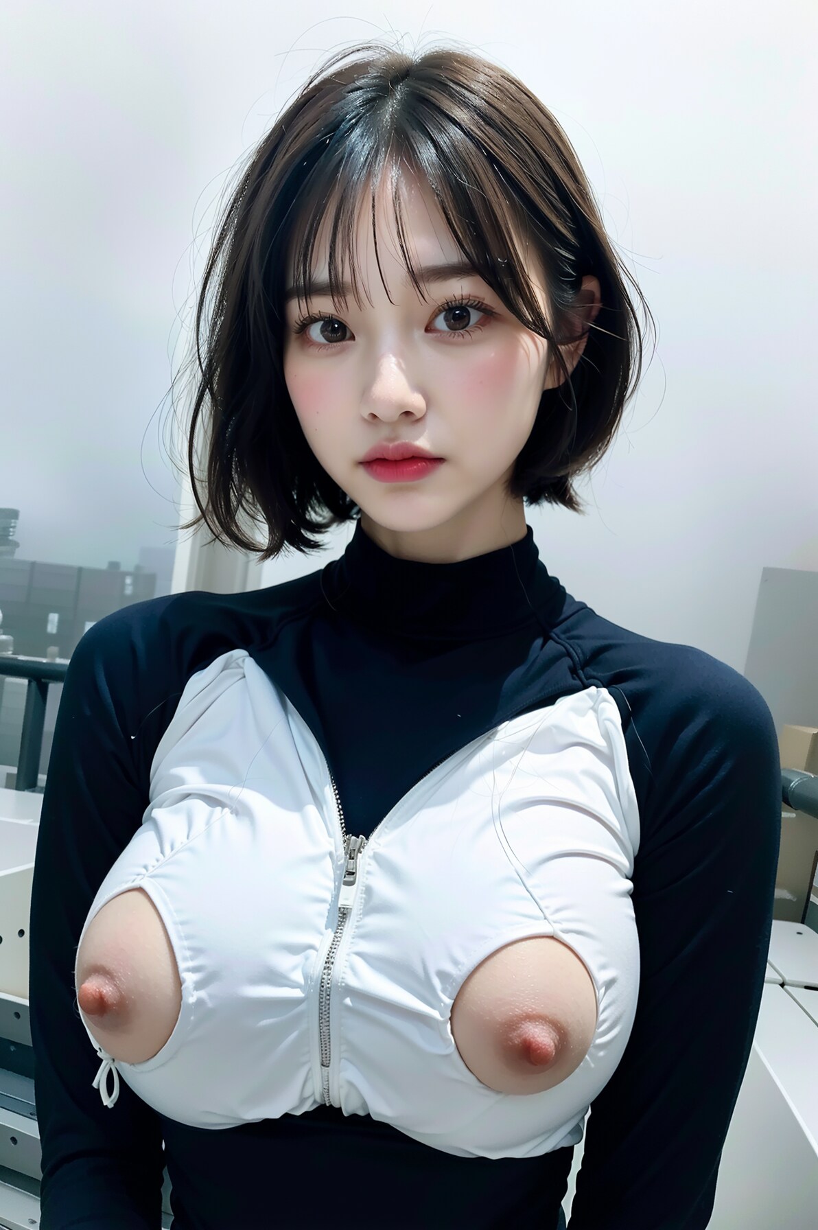 ラテックスボディースーツでポロリ 拡大版