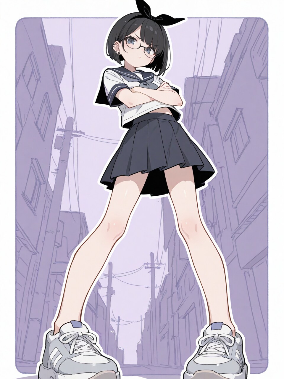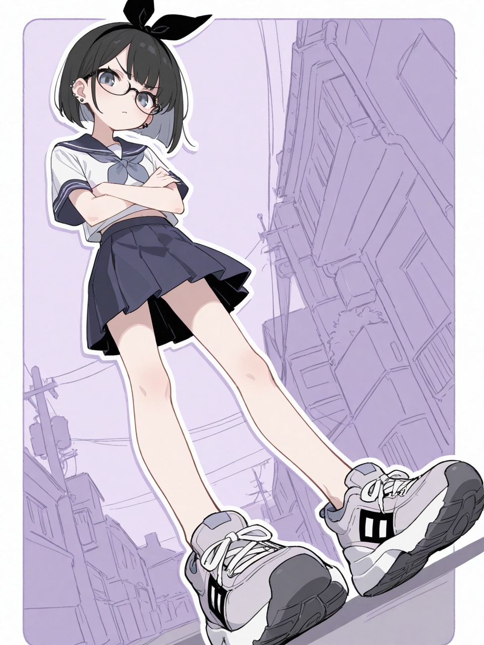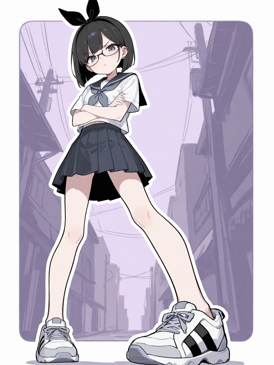 serafuku, (sneakers:1.3), miniskirt, (ear piercing:1.4),