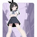 short bob, black hair, (bow hairband:1.1),
